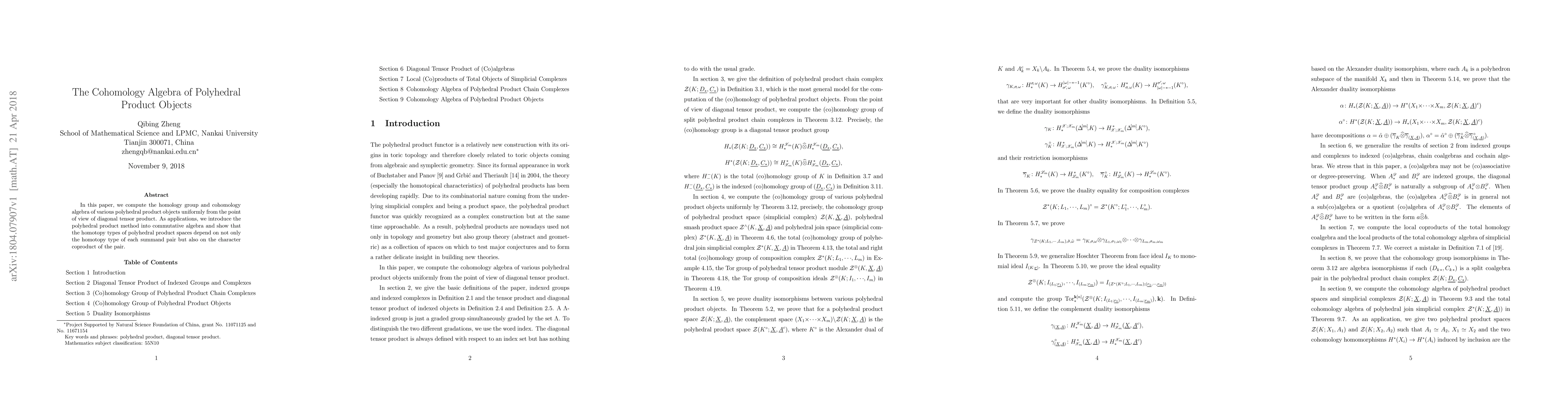 This paper computes the cohomology algebra of polyhedral product objects using diagonal tensor products and applies the polyhedral product method to commutative algebra, demonstrating that the homotopy types of these spaces depend on both the individual summand pairs and their character coproducts.
