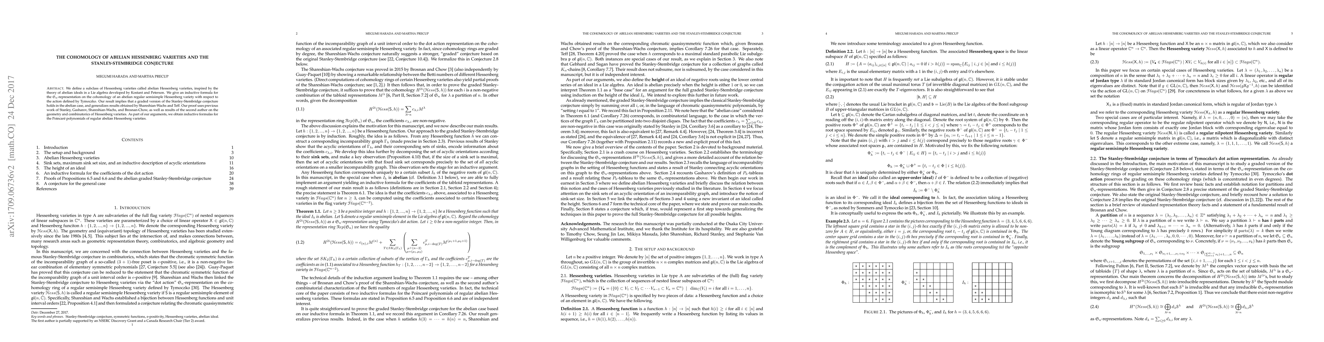 This paper defines abelian Hessenberg varieties, a subclass inspired by abelian ideals in Lie algebras, and provides an inductive formula for their $S_n$-representation on cohomology. The findings support a graded version of the Stanley-Stembridge conjecture for abelian Hessenberg varieties, extending previous results.
