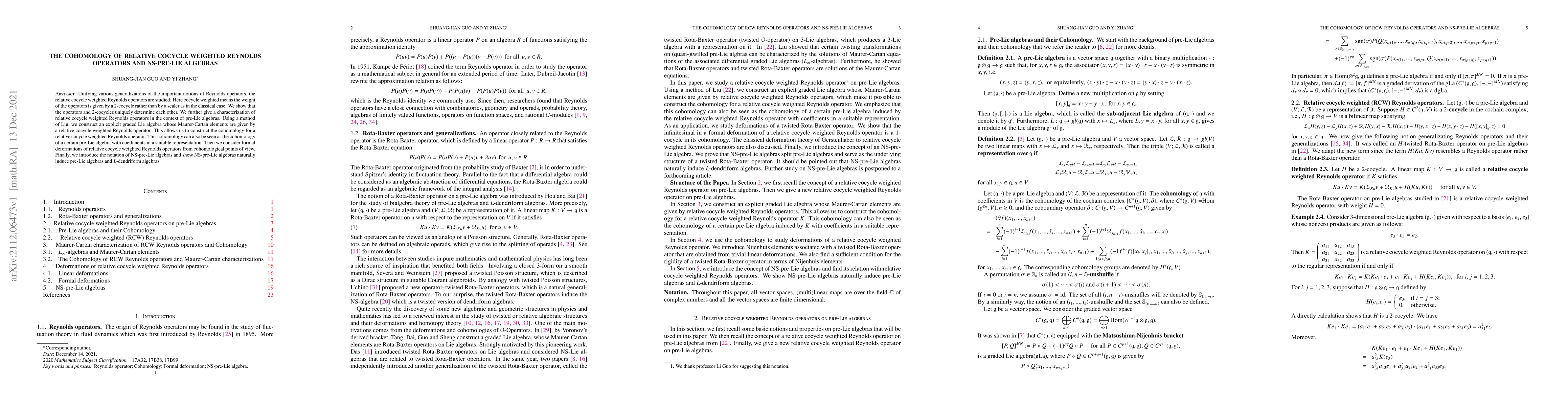 Unifying various generalizations of the important notions of Reynolds operators, the relative cocycle weighted Reynolds operators are studied. Here cocycle weighted means the weight of the operators is given by a 2-cocycle rather than by a scaler as in the classical case. We show that the operators and 2-cocycles uniquely determine each other. We further give a characterization of relative cocycle weighted Reynolds operators in the context of pre-Lie algebras. Using a method of Liu, we construct an explicit graded Lie algebra whose Maurer-Cartan elements are given by a relative cocycle weighted Reynolds operator. This allows us to construct the cohomology for a relative cocycle weighted Reynolds operator. This cohomology can also be seen as the cohomology of a certain pre-Lie algebra with coefficients in a suitable representation. Then we consider formal deformations of relative cocycle weighted Reynolds operators from cohomological points of view. Finally, we introduce the notation of NS-pre-Lie algebras and show NS-pre-Lie algebras naturally induce pre-Lie algebras and $L$-dendriform algebras.