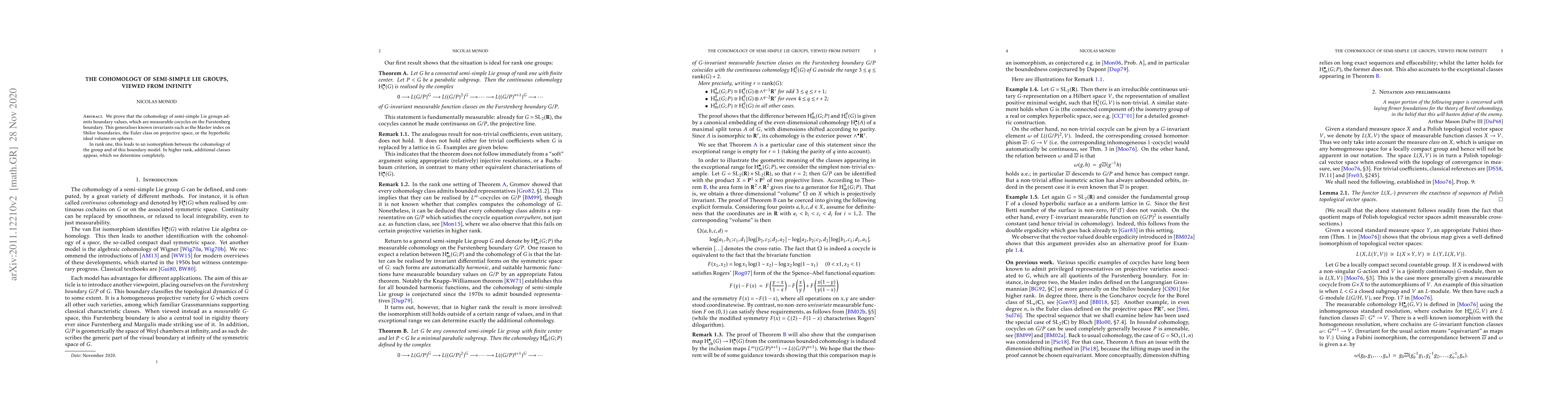 The paper demonstrates that semi-simple Lie groups possess cohomology with boundary values on the Furstenberg boundary, generalizing existing invariants. In rank one, it establishes an isomorphism between the group's cohomology and that of the boundary model, while in higher rank, it identifies new cohomology classes.