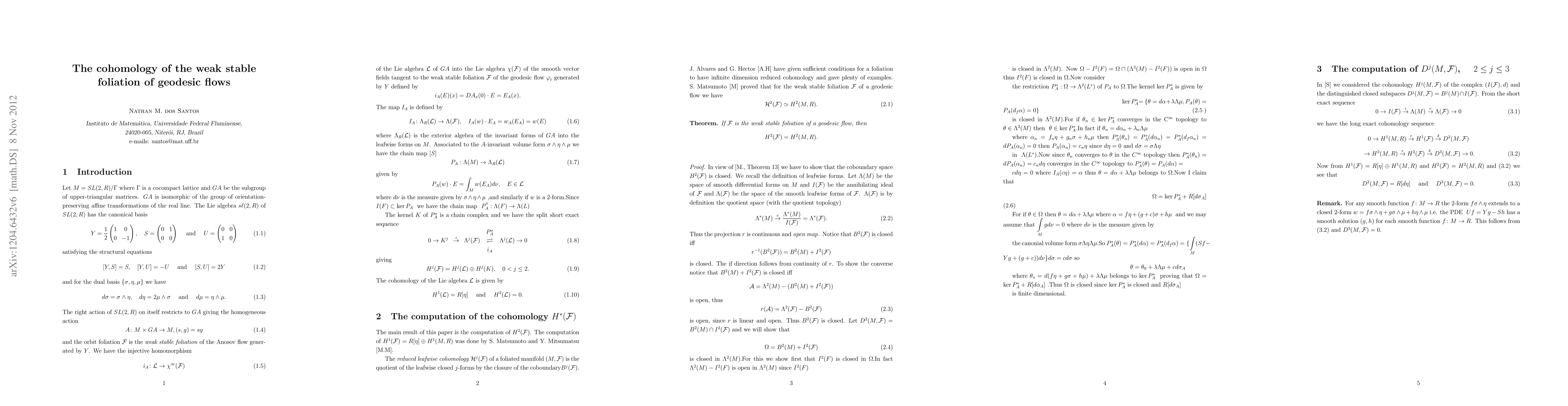 This paper computes the second dimension cohomology of the weak stable foliation of geodesic flows, completing the study initiated by Matsumoto and Mitsumatsu on the leafwise cohomology of these foliations. The findings are crucial for understanding the space of actions associated with the orbit foliation.