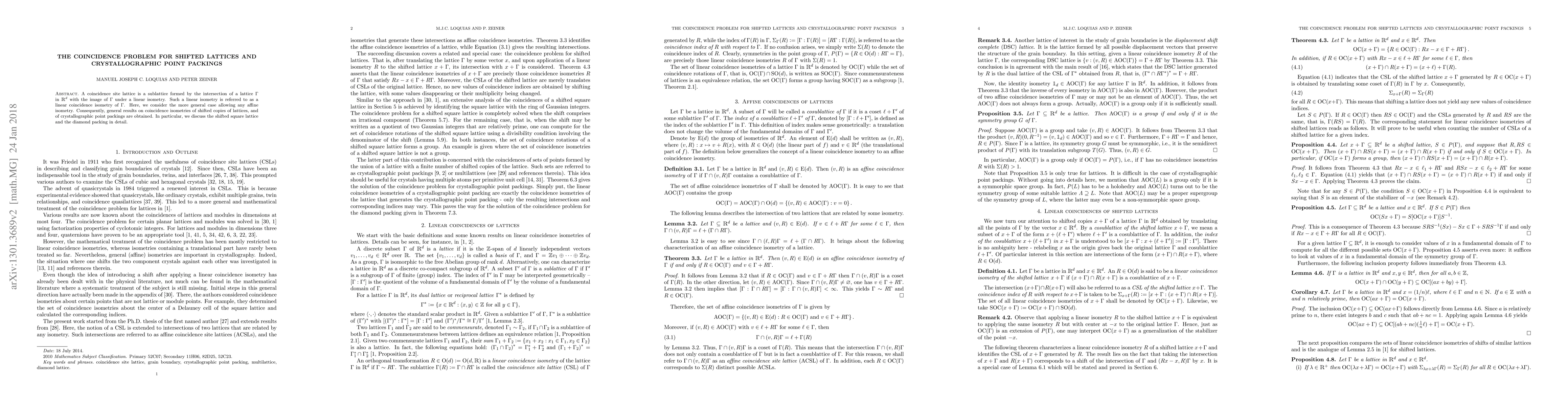Researchers explored coincidence site lattices in shifted lattices and crystallographic point packings, revealing new insights into the properties of these structures. They found general results on coincidence isometries, particularly for shifted square lattices and diamond packings.