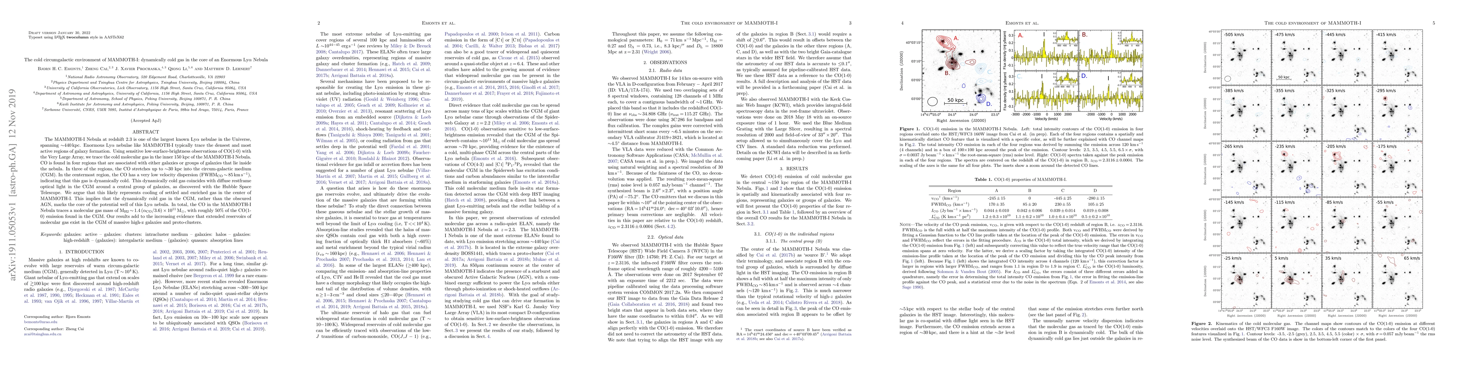 The MAMMOTH-I Nebula, one of the largest Ly-alpha nebulae, contains dynamically cold gas in its core, traced by CO(1-0) emissions. This cold gas, found in the circumgalactic medium, suggests cooling and settling of enriched gas, indicating a potential well core for the nebula.