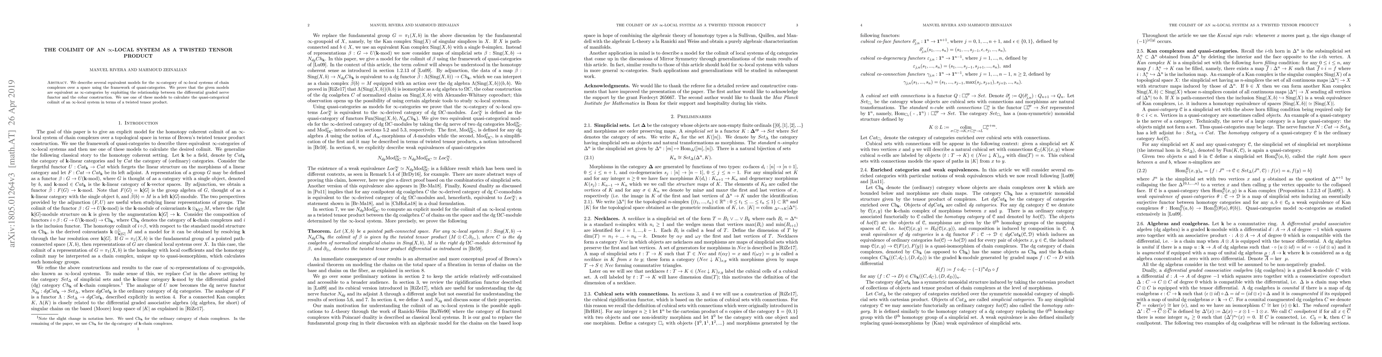 We describe several equivalent models for the infinity-category of infinity-local systems of chain complexes over a space using the framework of quasi-categories. We prove that the given models are equivalent as infinity-categories by exploiting the relationship between the differential graded nerve functor and the cobar construction. We use one of these models to calculate the quasi-categorical colimit of an infinity-local system in terms of a twisted tensor product.