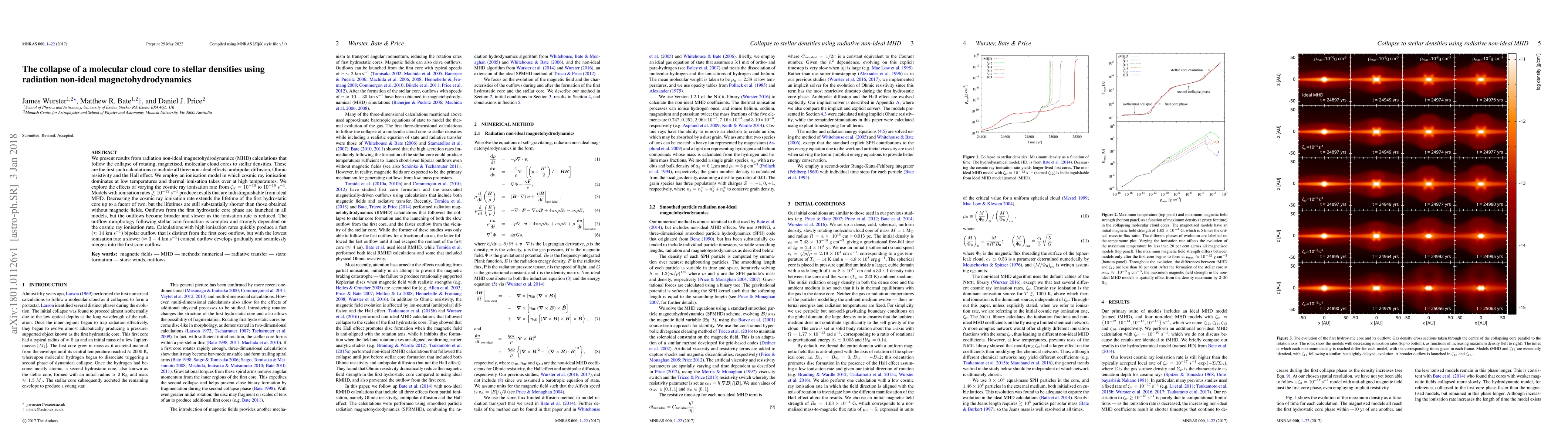 This paper presents radiation non-ideal magnetohydrodynamics calculations of the collapse of rotating, magnetised molecular cloud cores, including ambipolar diffusion, Ohmic resistivity, and the Hall effect. Lower cosmic ray ionisation rates extend the first hydrostatic core's lifetime but still result in outflows, with morphology varying significantly based on the ionisation rate.