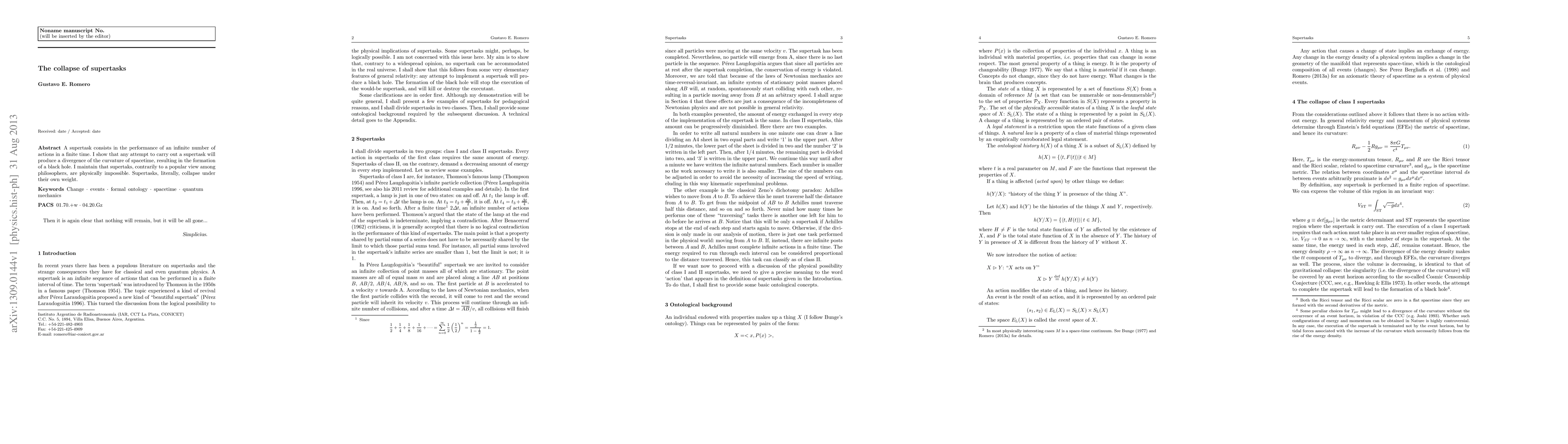 This paper argues that supertasks, which involve performing an infinite number of actions in finite time, are physically impossible as they would cause spacetime curvature to diverge, leading to the formation of a black hole. The author concludes that supertasks cannot be executed due to inherent physical constraints.