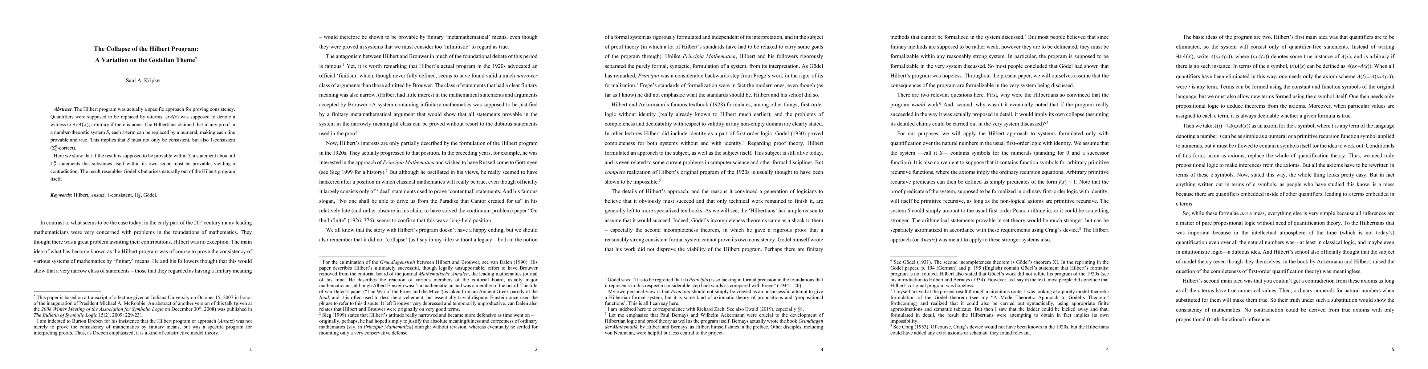 The Hilbert program was actually a specific approach for proving consistency. Quantifiers were supposed to be replaced by $\epsilon$-terms. $\epsilon{x}A(x)$ was supposed to denote a witness to $\exists{x}A(x)$, arbitrary if there is none. The Hilbertians claimed that in any proof in a number-theoretic system $S$, each $\epsilon$-term can be replaced by a numeral, making each line provable and true. This implies that $S$ must not only be consistent, but also 1-consistent ($\Sigma_{1}^{0}$-correct). Here we show that if the result is supposed to be provable within $S$, a statement about all $\Pi_{2}^{0}$ statements that subsumes itself within its own scope must be provable, yielding a contradiction. The result resembles G\"odel's but arises naturally out of the Hilbert program itself.
