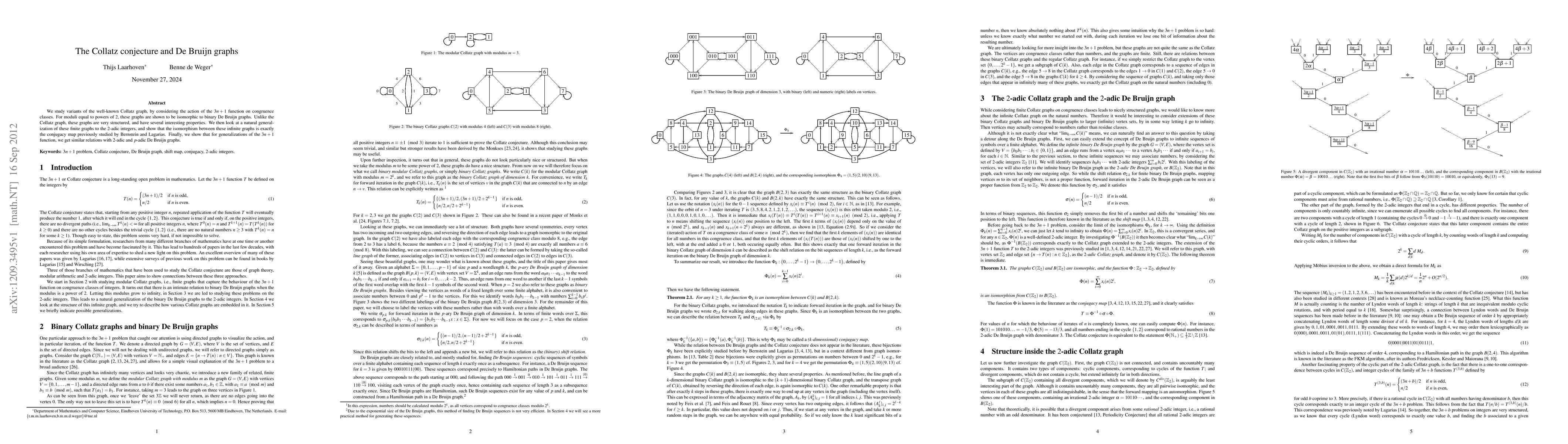 Researchers study Collatz graphs with 3n+1 function on congruence classes mod powers of 2, finding they resemble binary De Bruijn graphs, and generalize to infinite 2-adic integers and p-adic De Bruijn graphs.