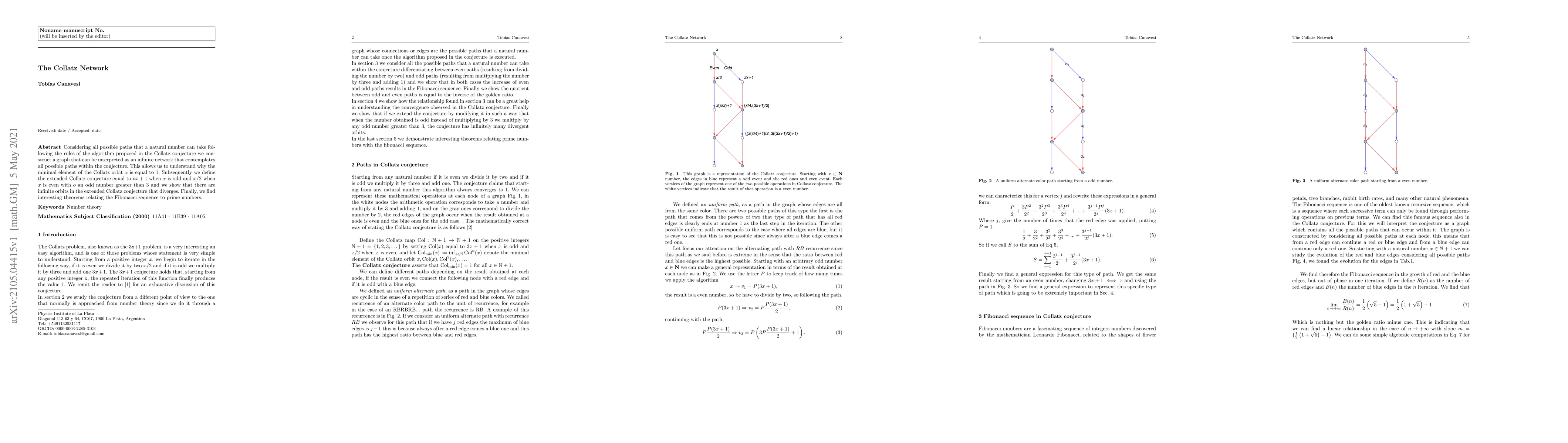 Considering all possible paths that a natural number can take following the rules of the algorithm proposed in the Collatz conjecture we construct a graph that can be interpreted as an infinite network that contemplates all possible paths within the conjecture. This allows us to understand why the minimal element of the Collatz orbit $x$ is equal to 1. Subsequently we define the extended Collatz conjecture equal to $o x+1$ when $x$ is odd and $x/2$ when $x$ is even with $o$ an odd number greater than $3$ and we show that there are infinite orbits in the extended Collatz conjecture that diverges. Finally, we find interesting theorems relating the Fibonacci sequence to prime numbers.