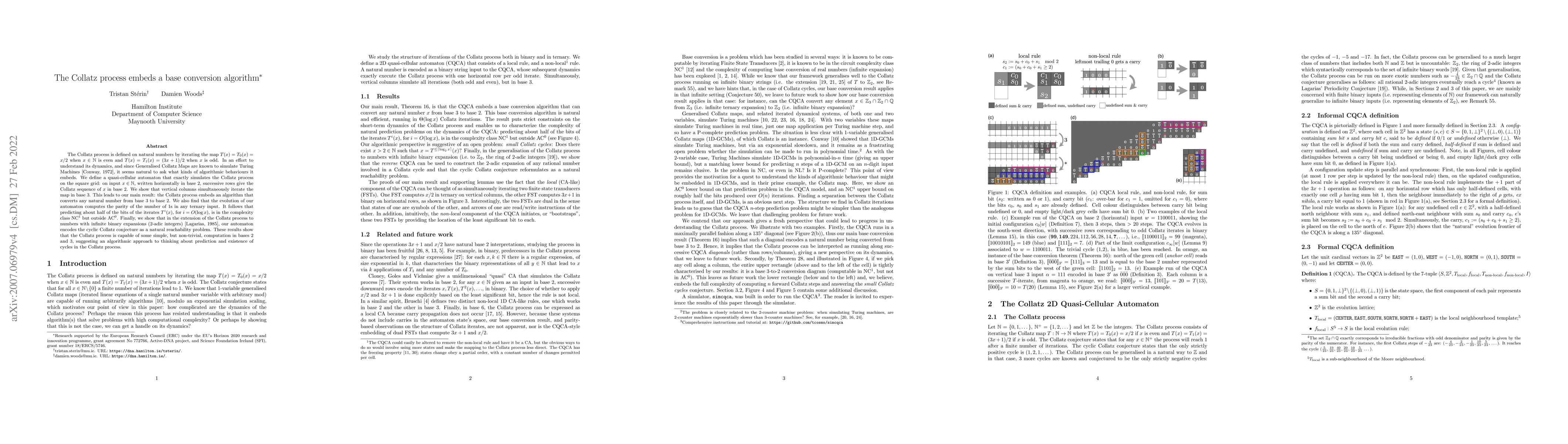 The Collatz process embeds an algorithm that converts natural numbers from base 3 to base 2 and encodes the cyclic Collatz conjecture in a reachability problem for 2-adic integers.