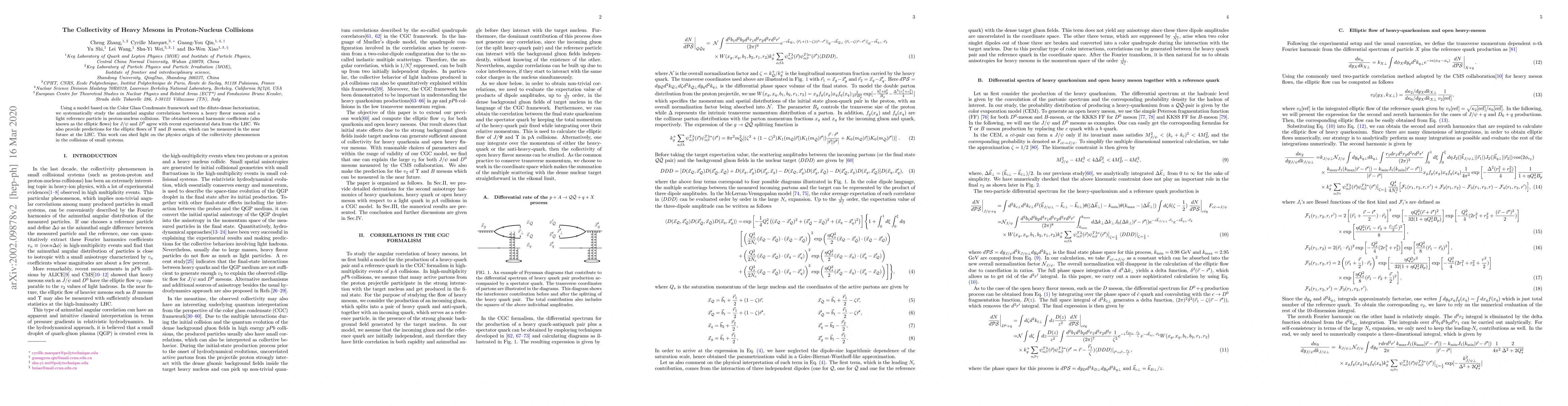 This study uses the Color Glass Condensate framework to analyze azimuthal angular correlations in proton-nucleus collisions, finding agreement between model predictions for $J/\psi$ and $D^0$ elliptic flows and LHC data. Predictions for $\Upsilon$ and $B$ meson flows are provided, potentially elucidating the collectivity in small system collisions.