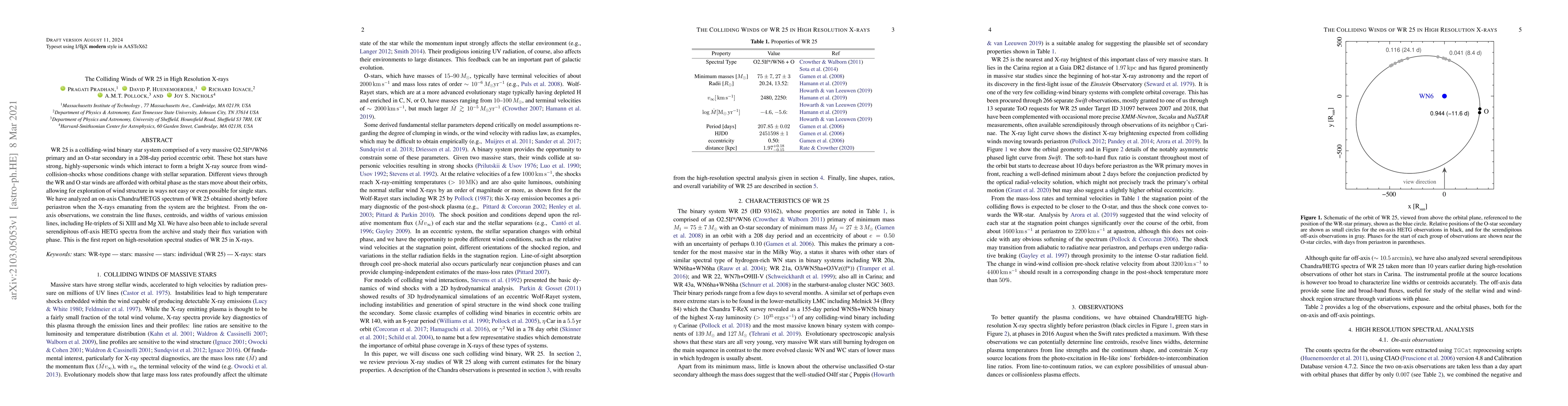 This study analyzes X-ray spectra from colliding-wind binary star system WR 25, revealing details about wind structure and composition through high-resolution observations.