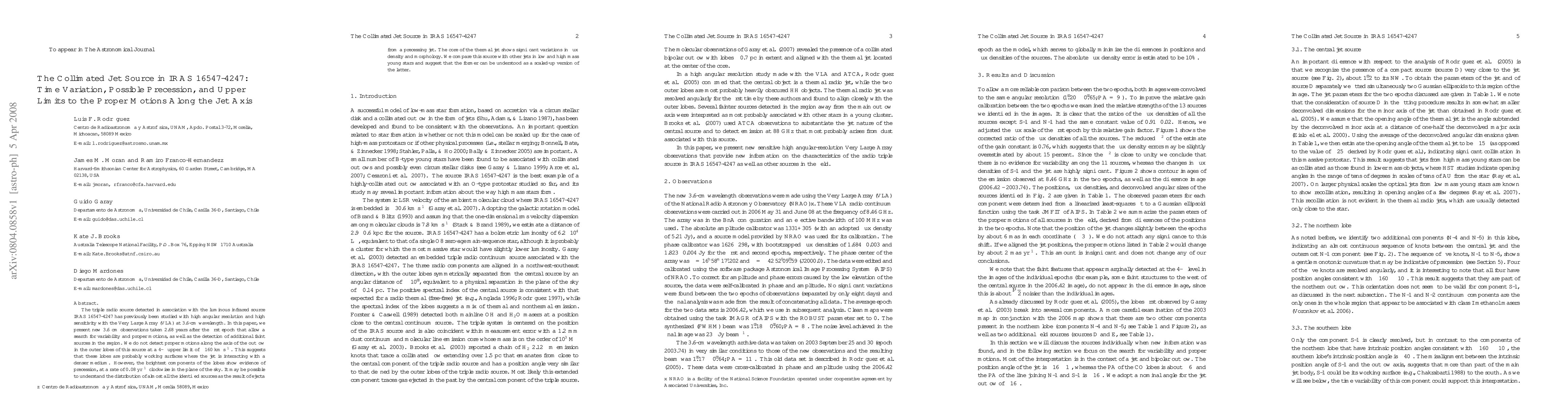 The research paper studies the collimated jet source in IRAS 16547-4247, finding it exhibits precession at a rate of 0.08 degrees per year and significant variability in flux density and morphology, with possible implications for understanding jet dynamics and their interaction with surrounding medium.