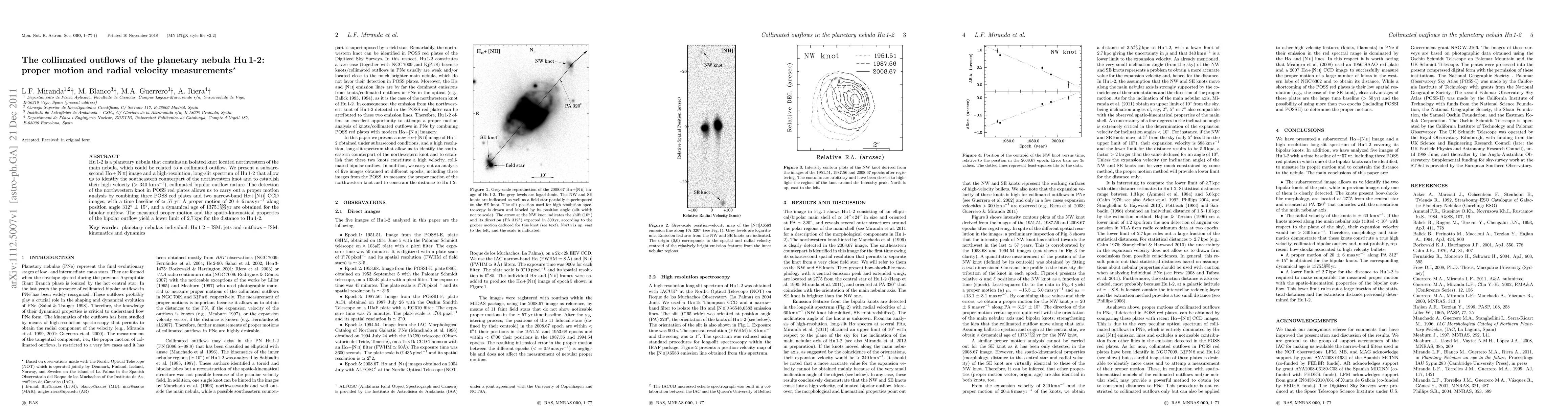 This paper investigates the collimated outflows in the planetary nebula Hu1-2, revealing a high-velocity bipolar outflow with a proper motion of 20 $\pm$ 6 mas/yr. The study combines historical and modern imaging to determine a dynamical age and a lower limit distance of 2.7 kpc for the nebula.