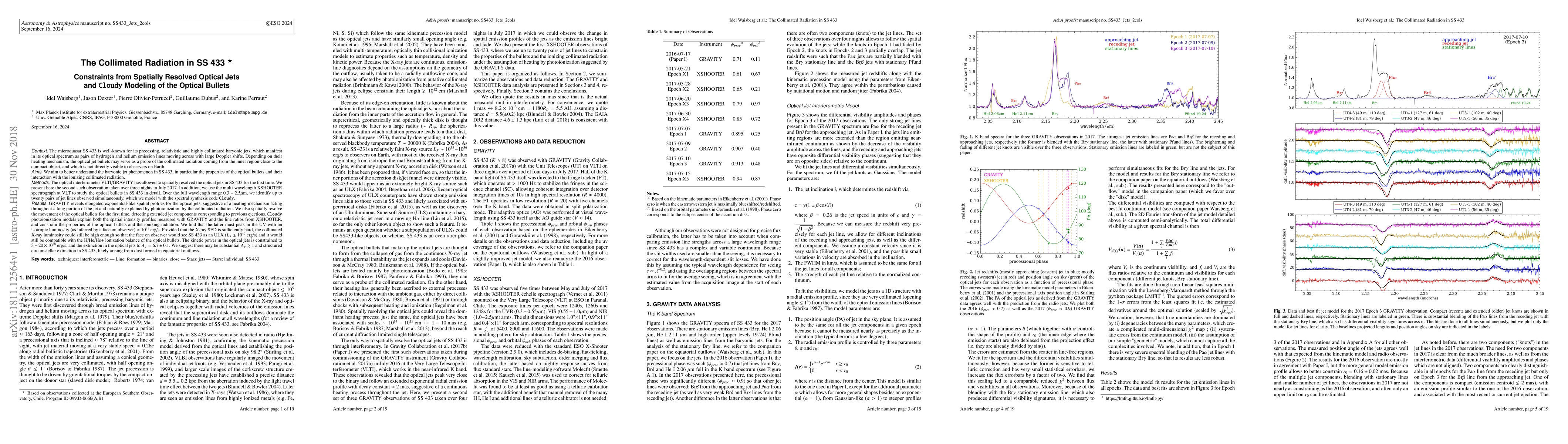 This paper investigates the collimated radiation in the microquasar SS 433 using spatially resolved optical jets and optical bullets observed with VLTI/GRAVITY and XSHOOTER. The study reveals elongated jet profiles and resolves the movement of optical bullets, suggesting photoionization by the collimated UV radiation.