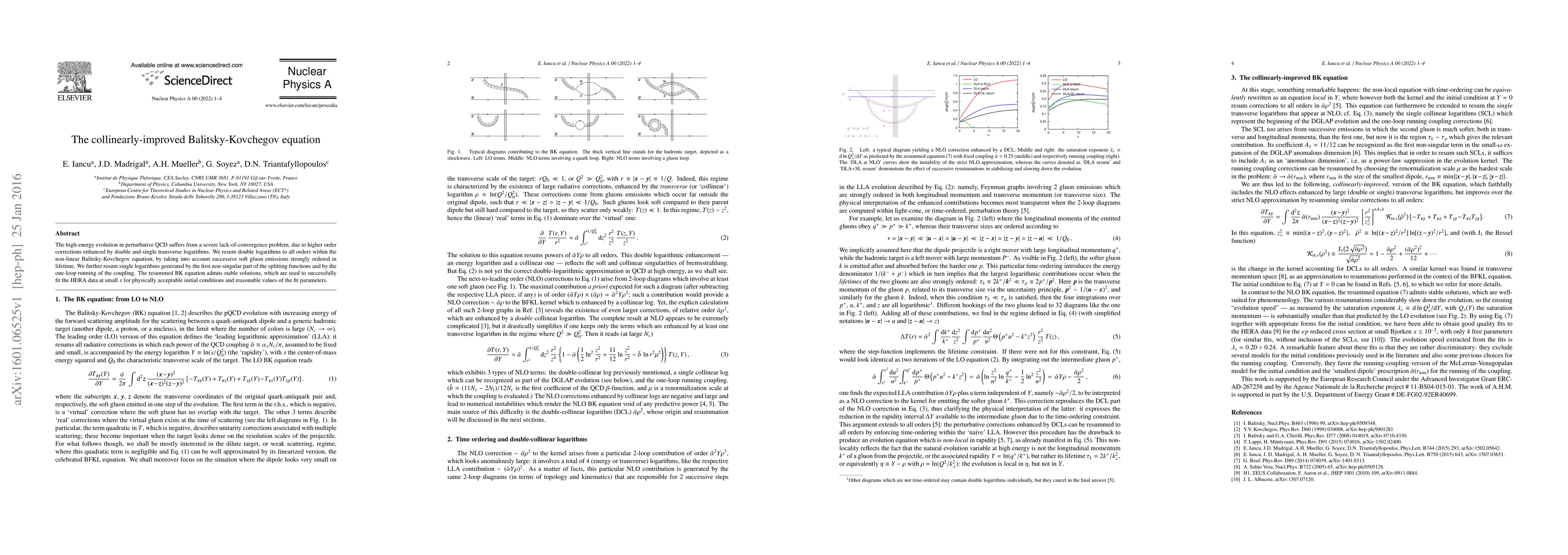 This paper presents a collinearly-improved Balitsky-Kovchegov equation to address the convergence issues in high-energy perturbative QCD by resummation of double and single transverse logarithms, leading to stable solutions that fit HERA data at small $x$. The method accounts for successive soft gluon emissions and running coupling.