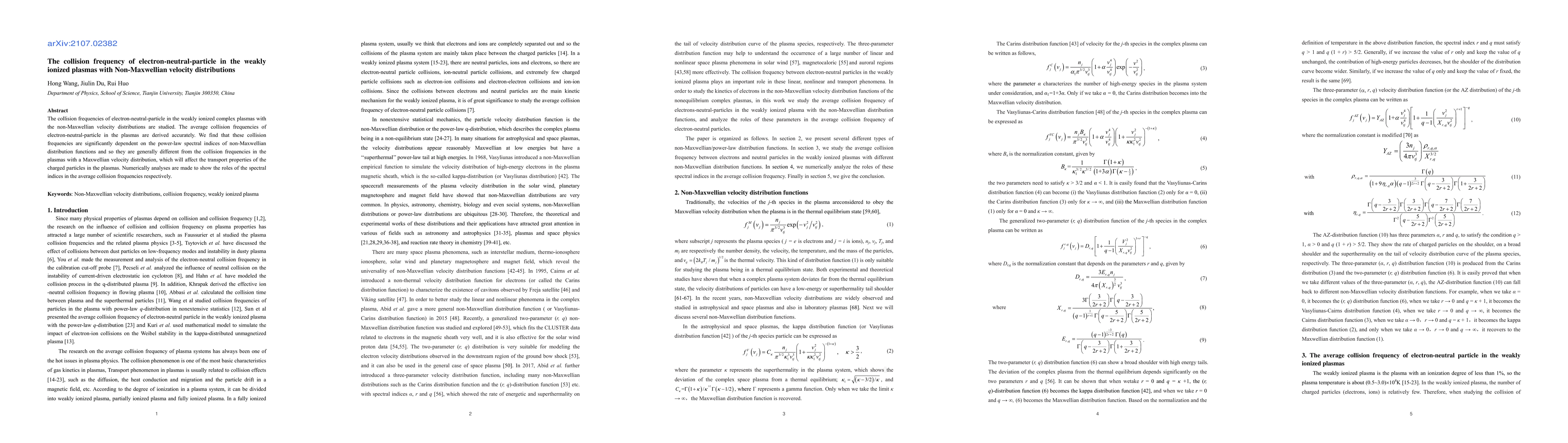This paper investigates the collision frequencies between electrons and neutral particles in weakly ionized plasmas with non-Maxwellian velocity distributions. It reveals that these collision frequencies depend significantly on the power-law spectral indices, differing from those in Maxwellian distributions, thereby impacting the transport properties of charged particles.
