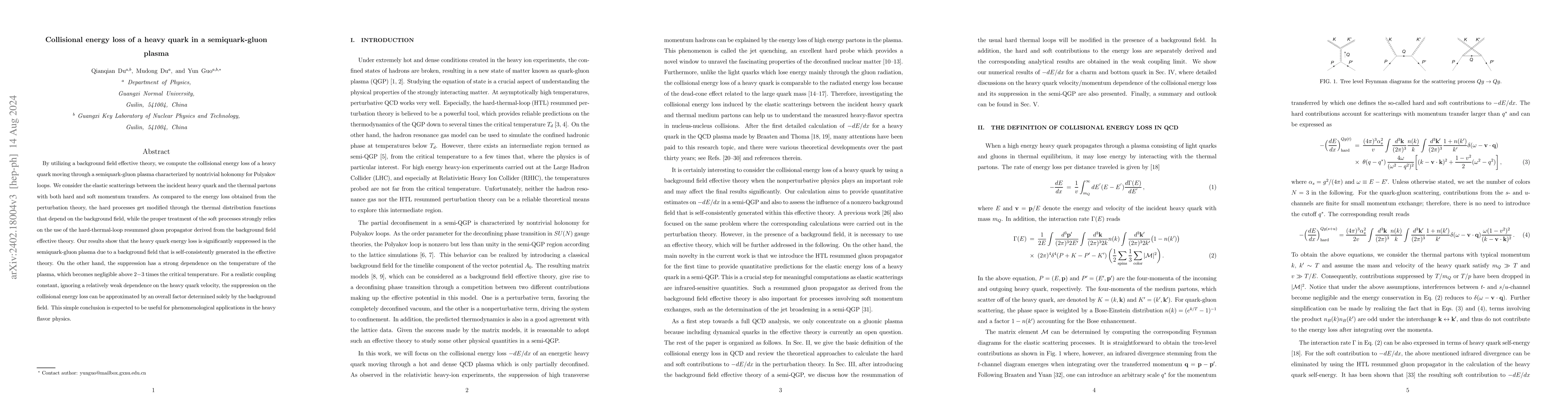 The paper introduces a novel approach to calculate the collisional energy loss of heavy quarks in a semi-QGP using a background field effective theory, accounting for both hard and soft scattering processes.