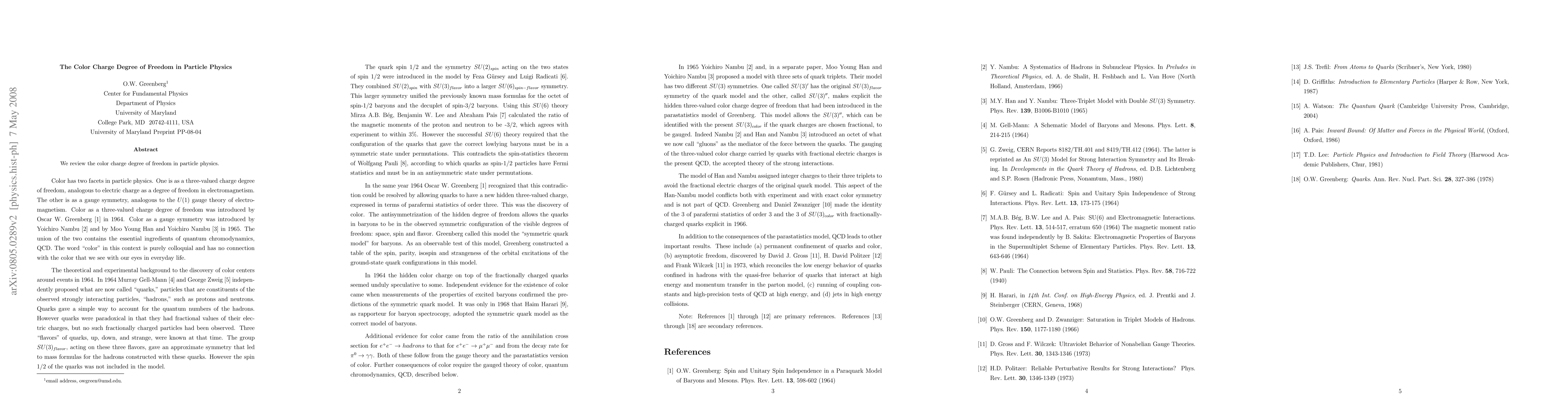 The paper provides a comprehensive review of color charge, a fundamental property of quarks in particle physics, discussing its role in strong interactions and the theory of Quantum Chromodynamics (QCD). It highlights the significance of color charge in confinement and the structure of hadrons.