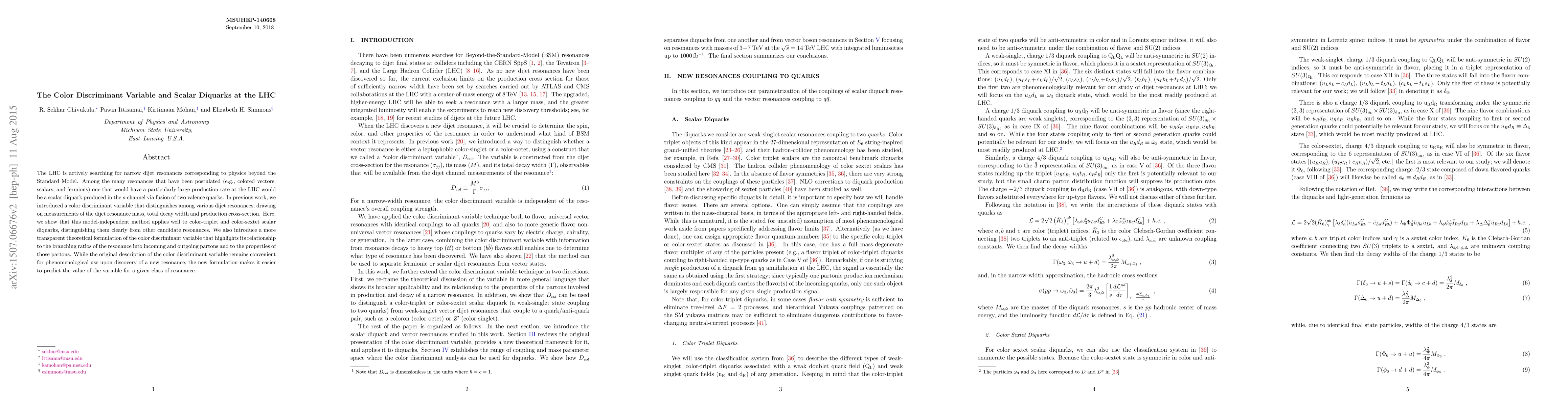 This paper explores the use of a color discriminant variable to distinguish scalar diquarks from other dijet resonances at the LHC, demonstrating its effectiveness for both color-triplet and color-sextet scalar diquarks. It also presents a clearer theoretical framework for the variable, enhancing its predictive power for new resonance classes.