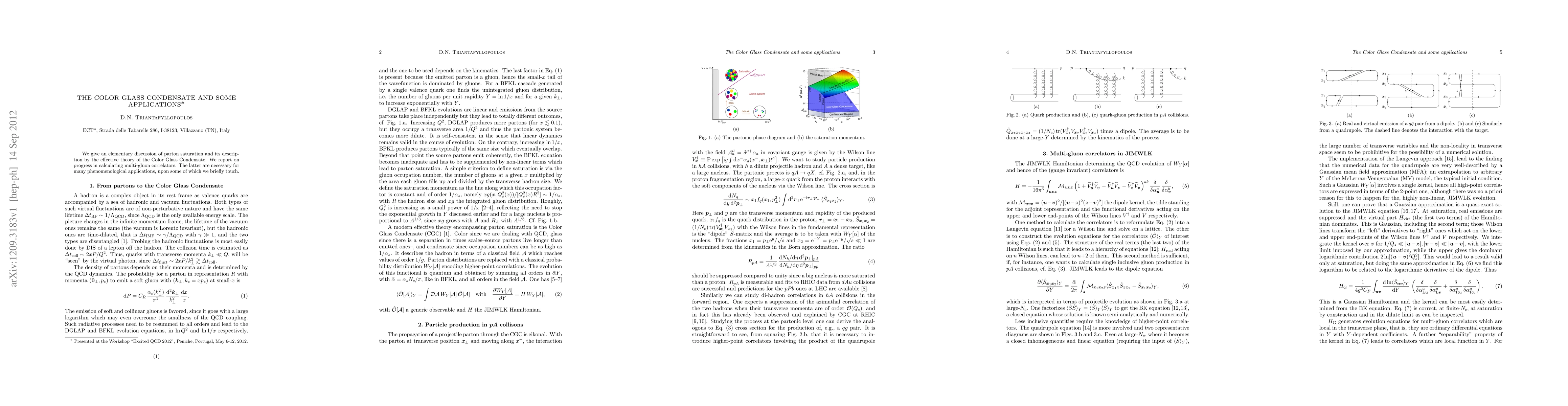 We give an elementary discussion of parton saturation and its description by the effective theory of the Color Glass Condensate. We report on progress in calculating multi-gluon correlators. The latter are necessary for many phenomenological applications, upon some of which we briefly touch.