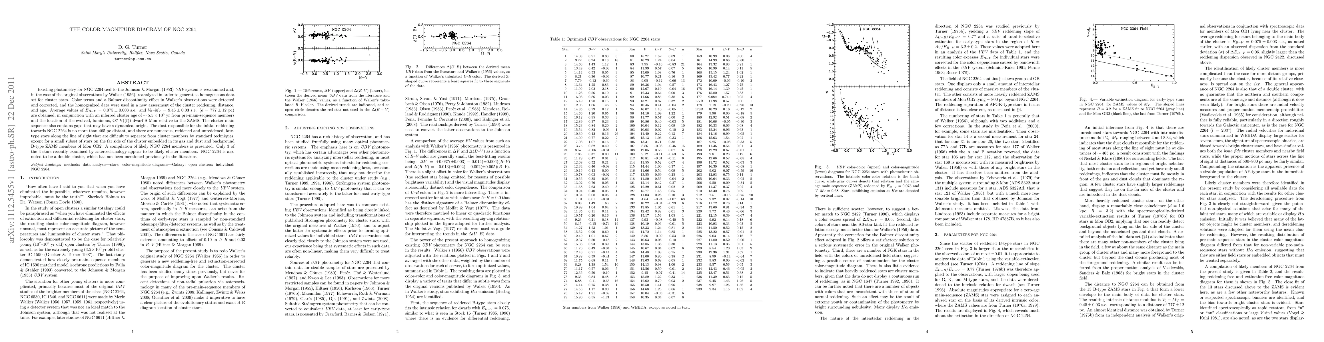 This paper reexamines NGC 2264's photometry, correcting observational errors to generate a homogeneous dataset, leading to an estimated cluster reddening of E(B-V)=0.075±0.003, distance of 777±12 pc, and age of ~5.5x10^6 years. The cluster is also noted as a double cluster and contains stars difficult to distinguish from non-members.