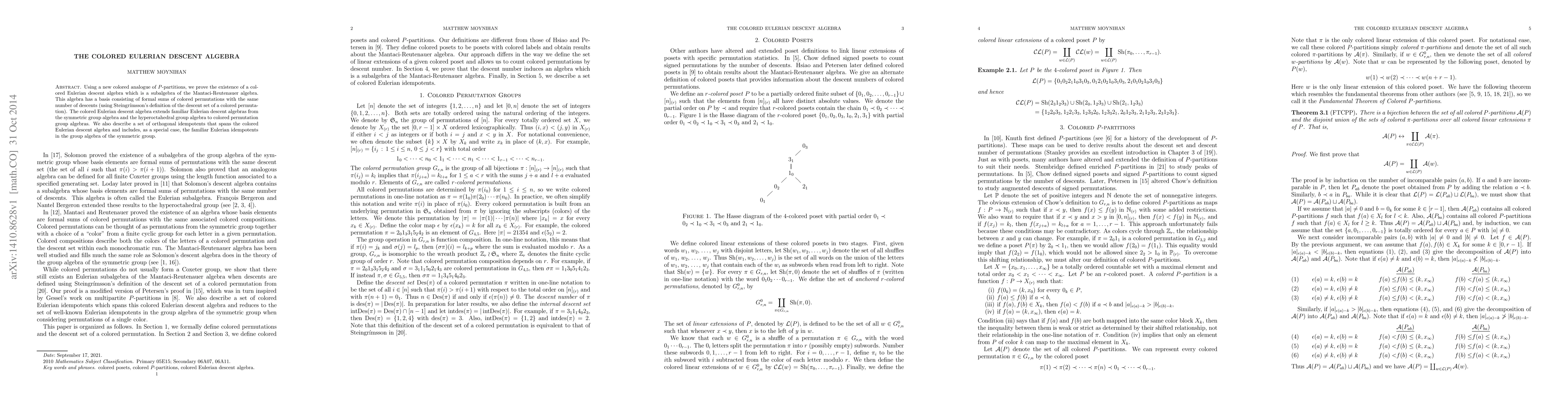 Using a new colored analogue of P-partitions, we prove the existence of a colored Eulerian descent algebra which is a subalgebra of the Mantaci-Reutenauer algebra. This algebra has a basis consisting of formal sums of colored permutations with the same number of descents (using Steingr\'imsson's definition of the descent set of a colored permutation). The colored Eulerian descent algebra extends familiar Eulerian descent algebras from the symmetric group algebra and the hyperoctahedral group algebra to colored permutation group algebras. We also describe a set of orthogonal idempotents that spans the colored Eulerian descent algebra and includes, as a special case, the familiar Eulerian idempotents in the group algebra of the symmetric group.