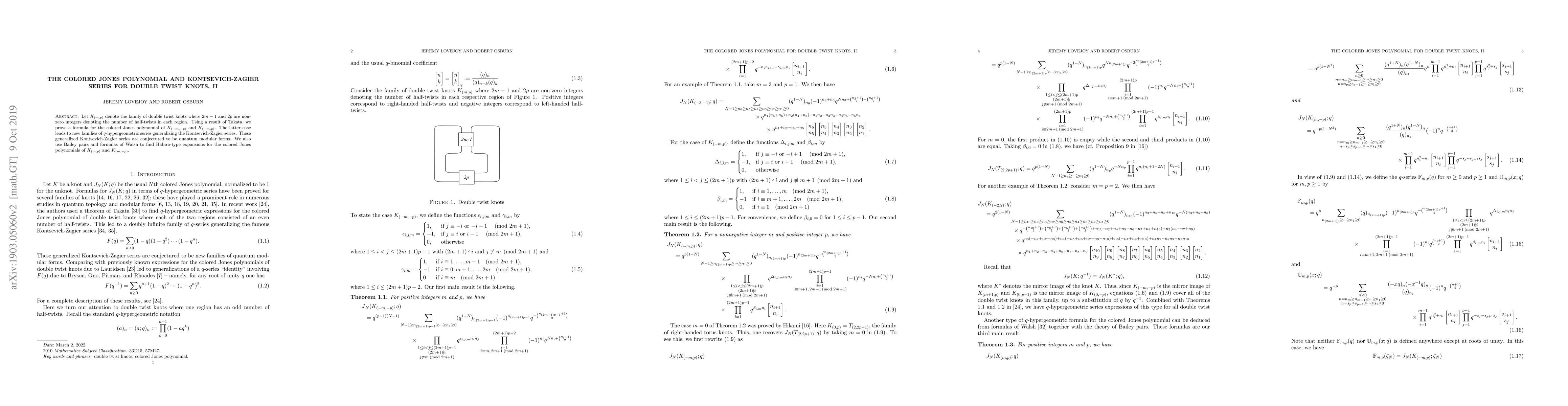 Let $K_{(m,p)}$ denote the family of double twist knots where $2m-1$ and $2p$ are non-zero integers denoting the number of half-twists in each region. Using a result of Takata, we prove a formula for the colored Jones polynomial of $K_{(-m,-p)}$ and $K_{(-m,p)}$. The latter case leads to new families of $q$-hypergeometric series generalizing the Kontsevich-Zagier series. We also use Bailey pairs and formulas of Walsh to find cyclotomic-like expansions for the colored Jones polynomials of $K_{(m,p)}$ and $K_{(m,-p)}$.