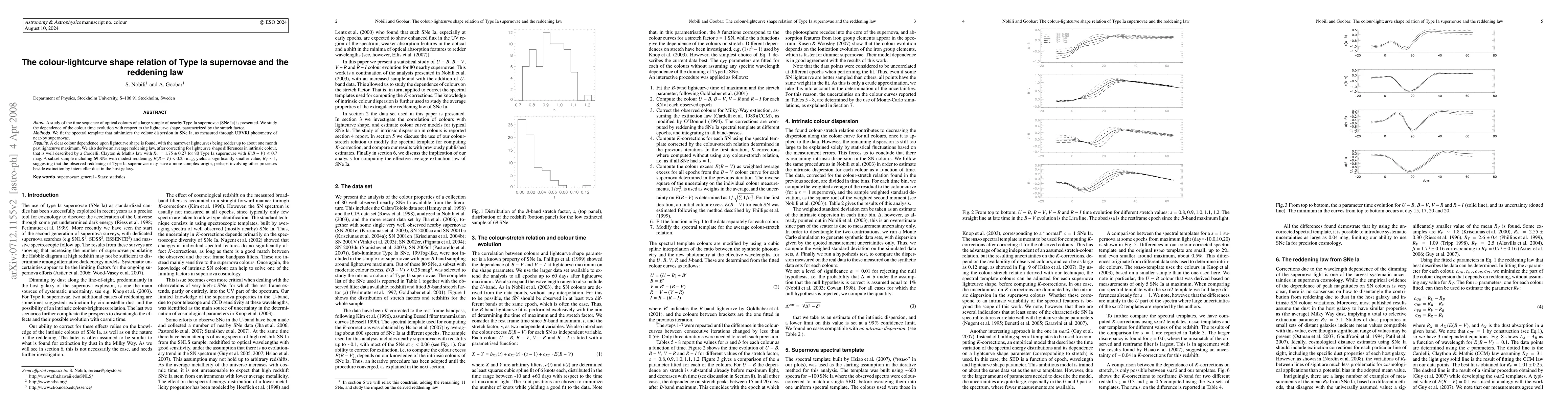 This research investigates the relationship between color and lightcurve shape in Type Ia supernovae, finding narrower lightcurves to be redder up to a month after maximum. An average reddening law, R_V=1.75±0.27, was derived for 80 SNe Ia with modest reddening, but a subset of 69 SNe suggested a simpler reddening law, R_V ~ 1, indicating a more complex origin of reddening than just interstellar dust extinction.
