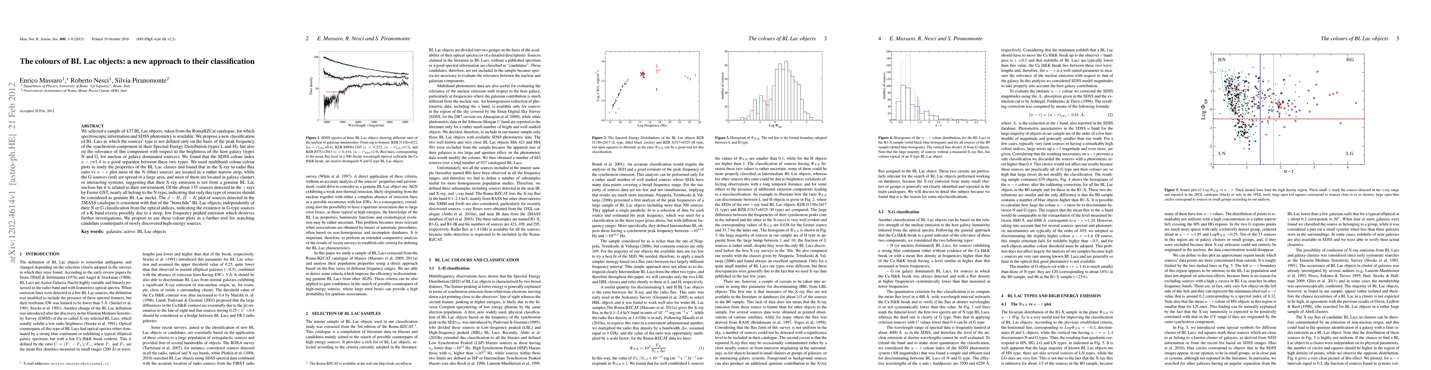 We selected a sample of 437 BL Lac objects, taken from the RomaBZCat catalogue, for which spectroscopic information and SDSS photometry is available. We propose a new classification of BL Lacs in which the sources' type is not defined only on the basis of the peak frequency of the synchrotron component in their Spectral Energy Distribution (types L and H), but also on the relevance of this component with respect to the brightness of the host galaxy (types N and G, for nuclear or galaxy dominated sources). We found that the SDSS colour index u-r=1.4 is a good separator between these two types. We used multiband colour-colour plots to study the properties of the BL Lac classes and found that in the X-ray to radio flux ratio vs u-r plot most of the N (blue) sources are located in a rather narrow strip, while the G-sources (red) are spread in a large area, and most of them are located in galaxy clusters or interacting systems, suggesting that their X-ray emission is not from a genuine BL Lac nucleus but it is related to their environment. Of the about 135 sources detected in the gamma-rays by Fermi-GST, nearly all belong to the N-type, indicating that only this type of sources should be considered as genuine BL Lac nuclei. The J-H, H-K plot of sources detected in the 2MASS catalogue is consistent with that of the "bona fide" BL Lac objects, independently of their N or G classification from the optical indices, indicating the existence in G-type sources of a K-band excess possibly due to a steep, low frequency peaked emission which deserves further investigations. We propose to use these colour plots as a further tool for searching candidate counterparts of newly discovered high-energy sources.