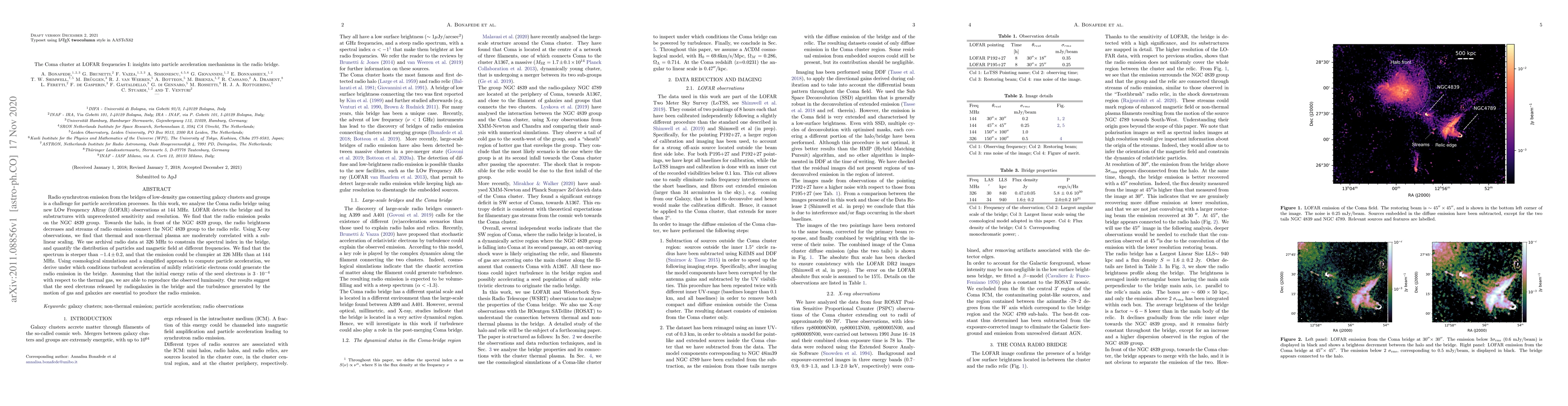 This study uses LOFAR observations at 144 MHz to analyze the Coma cluster's radio bridge, revealing its substructures and peak emission near NGC 4839. The findings suggest that turbulent acceleration of mildly relativistic electrons, possibly seeded by radiogalaxies, combined with the turbulence from gas and galaxy motion, is crucial for generating the observed radio emission.