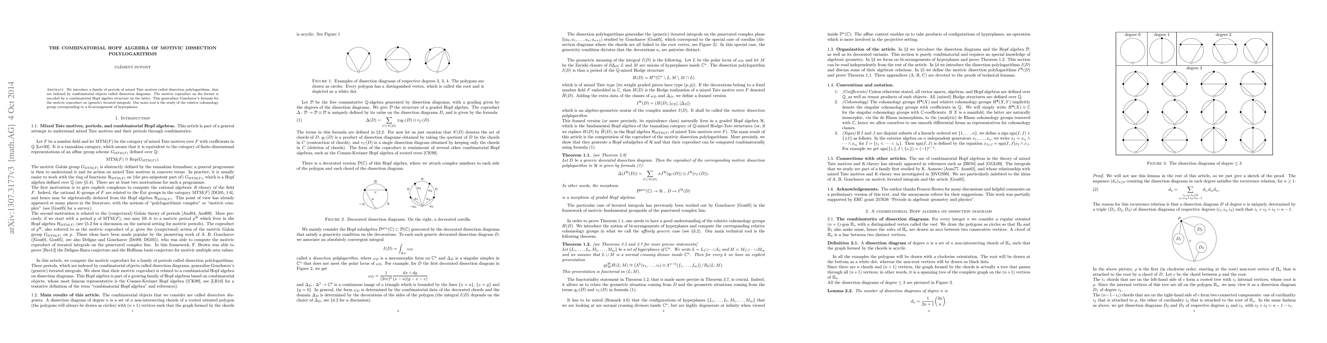 The paper introduces dissection polylogarithms, periods of mixed Tate motives indexed by dissection diagrams, and establishes a combinatorial Hopf algebra structure on these diagrams, generalizing Goncharov's formula. The study leverages the relative cohomology group from bi-arrangements of hyperplanes.