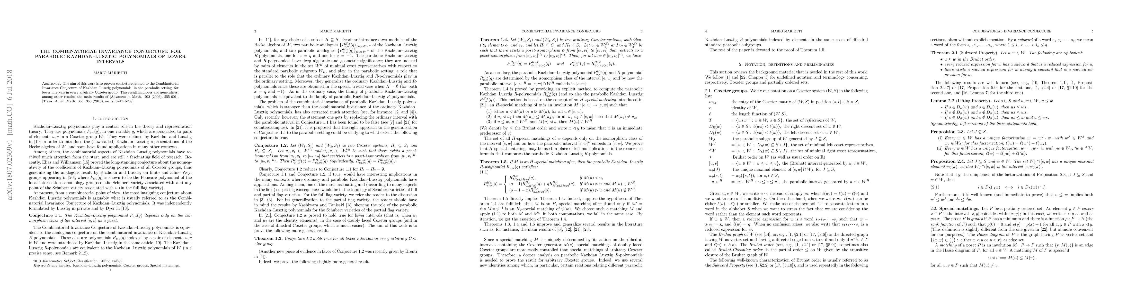 The aim of this work is to prove a conjecture related to the Combinatorial Invariance Conjecture of Kazhdan-Lusztig polynomials, in the parabolic setting, for lower intervals in every arbitrary Coxeter group. This result improves and generalizes, among other results, the main results of [Advances in Math. {202} (2006), 555-601], [Trans. Amer. Math. Soc. {368} (2016), no. 7, 5247--5269].