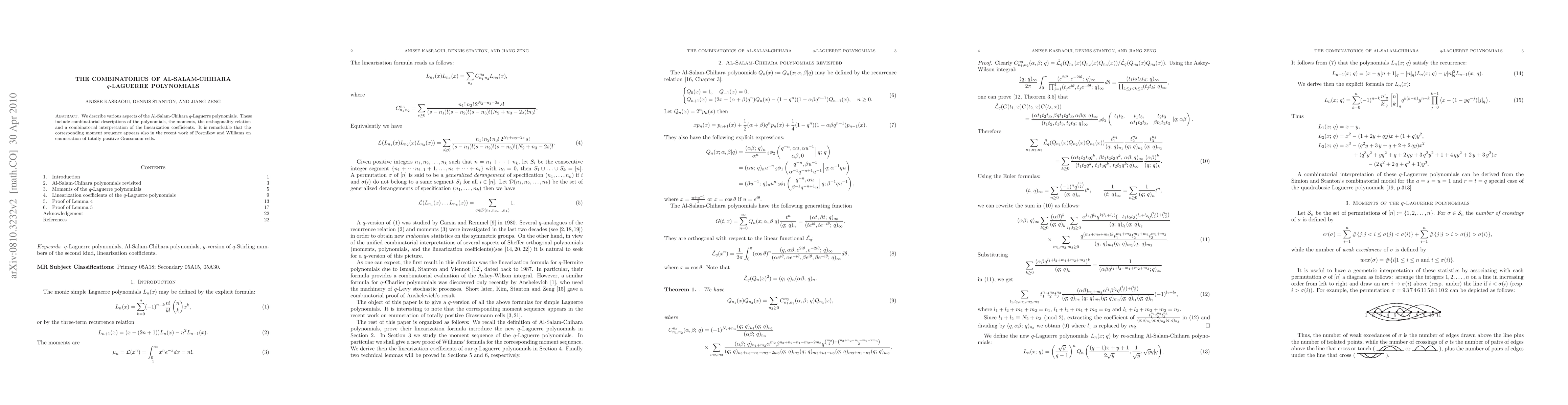 We describe various aspects of the Al-Salam-Chihara $q$-Laguerre polynomials. These include combinatorial descriptions of the polynomials, the moments, the orthogonality relation and a combinatorial interpretation of the linearization coefficients. It is remarkable that the corresponding moment sequence appears also in the recent work of Postnikov and Williams on enumeration of totally positive Grassmann cells.