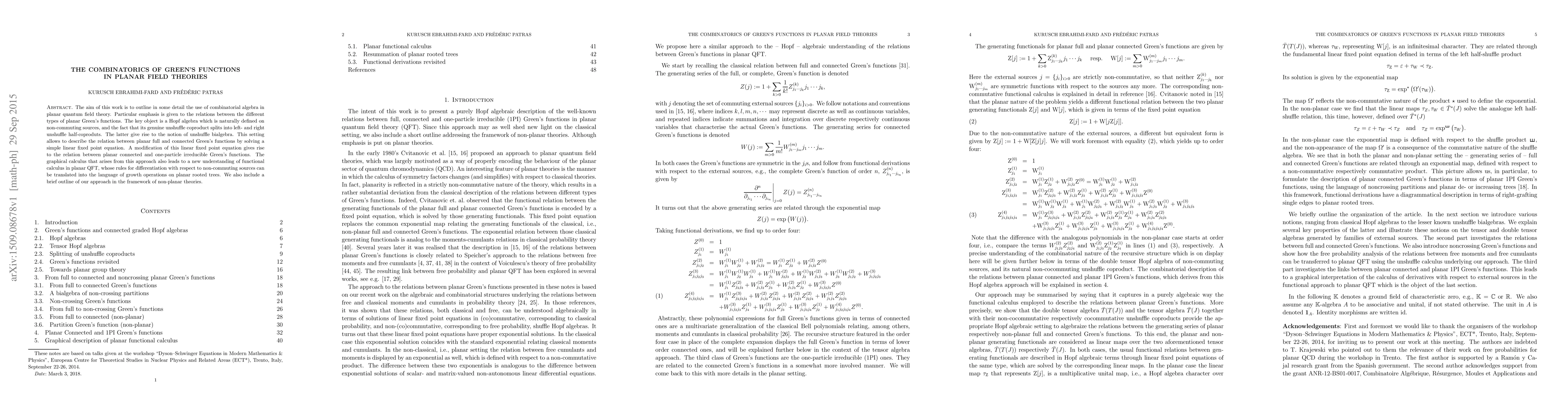 The aim of this work is to outline in some detail the use of combinatorial algebra in planar quantum field theory. Particular emphasis is given to the relations between the different types of planar Green's functions. The key object is a Hopf algebra which is naturally defined on non-commuting sources, and the fact that its genuine unshuffle coproduct splits into left- and right unshuffle half-coproduts. The latter give rise to the notion of unshuffle bialgebra. This setting allows to describe the relation between planar full and connected Green's functions by solving a simple linear fixed point equation. A modification of this linear fixed point equation gives rise to the relation between planar connected and one-particle irreducible Green's functions. The graphical calculus that arises from this approach also leads to a new understanding of functional calculus in planar QFT, whose rules for differentiation with respect to non-commuting sources can be translated into the language of growth operations on planar rooted trees. We also include a brief outline of our approach in the framework of non-planar theories.