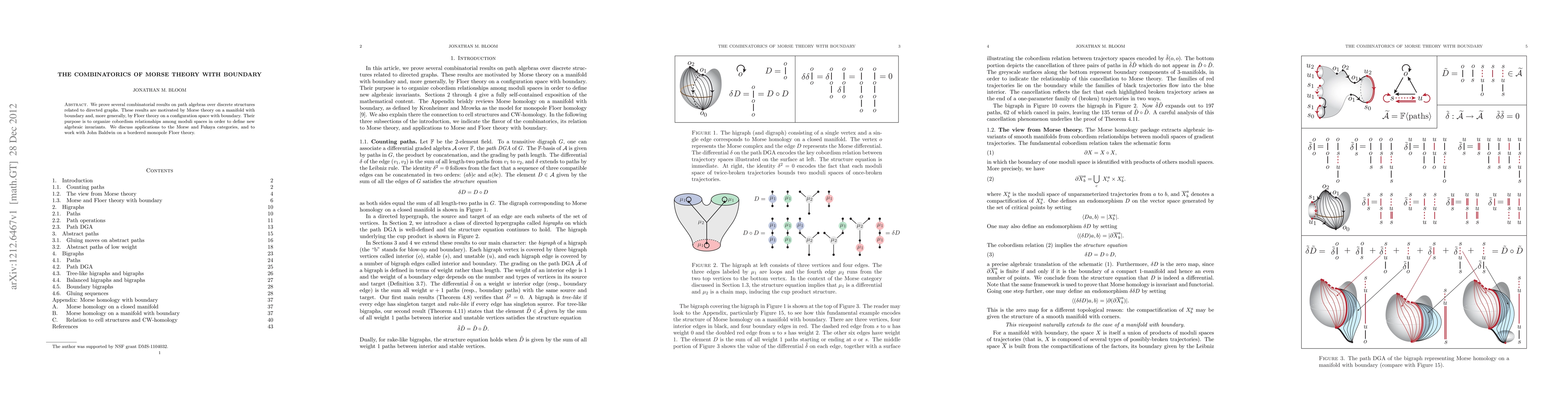 This paper proves combinatorial results on path algebras linked to directed graphs, motivated by Morse theory with boundary and Floer theory, aiming to organize cobordism relationships among moduli spaces for defining new algebraic invariants. Applications include advancements in Morse and Fukaya categories and bordered monopole Floer theory.