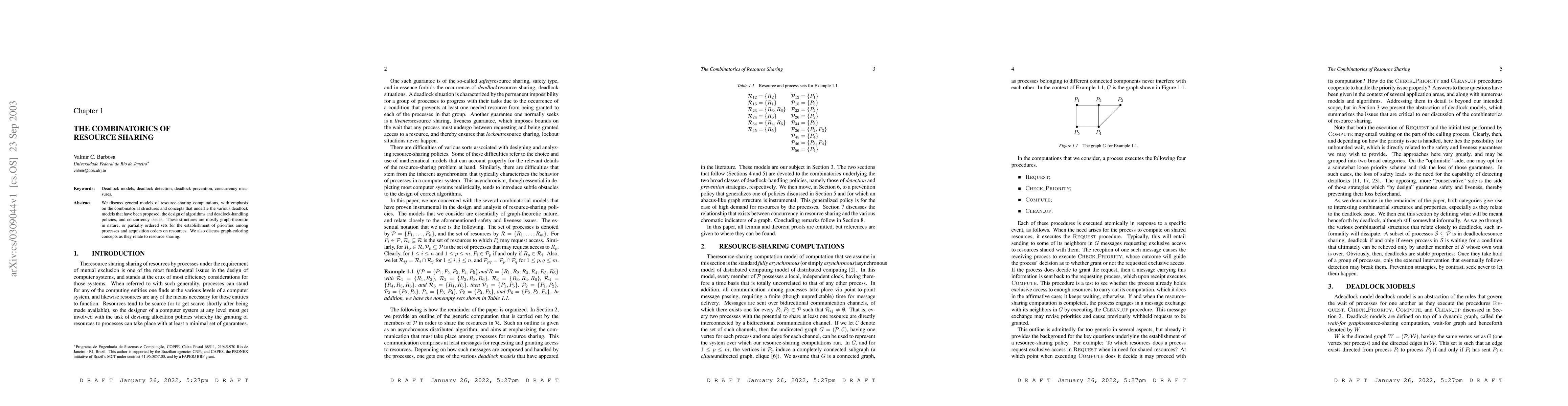 We discuss general models of resource-sharing computations, with emphasis on the combinatorial structures and concepts that underlie the various deadlock models that have been proposed, the design of algorithms and deadlock-handling policies, and concurrency issues. These structures are mostly graph-theoretic in nature, or partially ordered sets for the establishment of priorities among processes and acquisition orders on resources. We also discuss graph-coloring concepts as they relate to resource sharing.