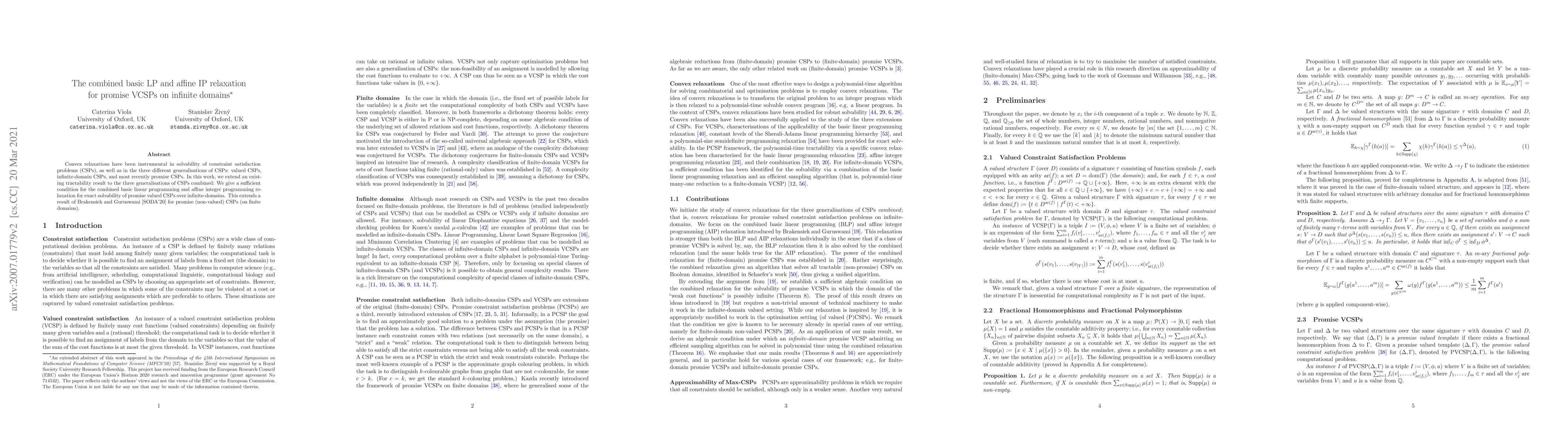 This paper extends a tractability result for solving promise valued constraint satisfaction problems (CSPs) over infinite domains using combined basic linear programming and affine integer programming relaxations. It generalizes the previous work by Brakensiek and Guruswami for promise CSPs on finite domains.