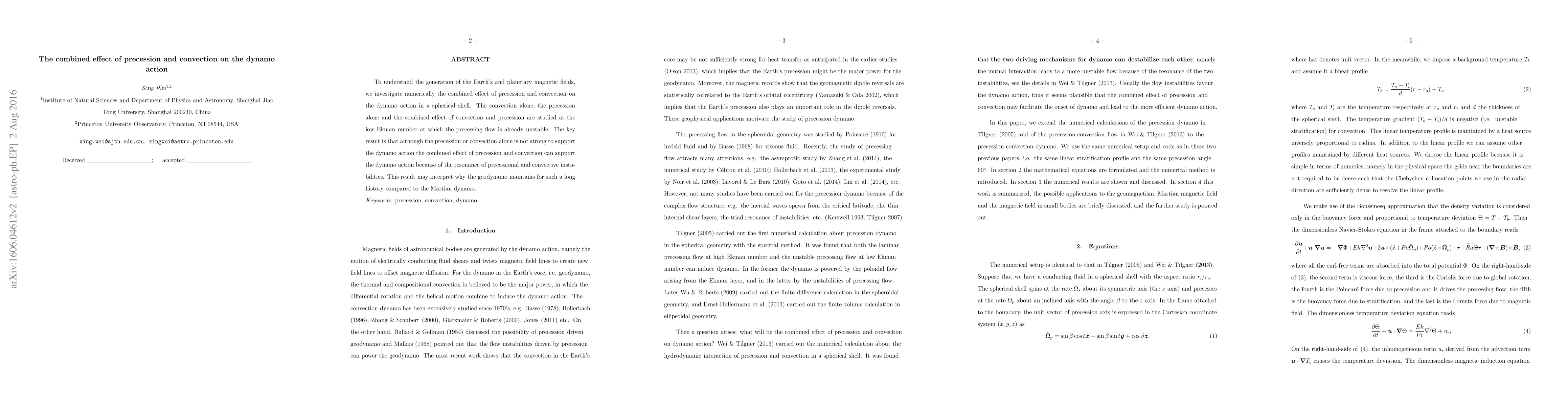 This paper explores numerically how precession and convection together enhance dynamo action in a spherical shell, finding that their combined effect can sustain a magnetic field due to resonance between instabilities, offering insight into the longevity of Earth's geodynamo compared to the Martian dynamo.