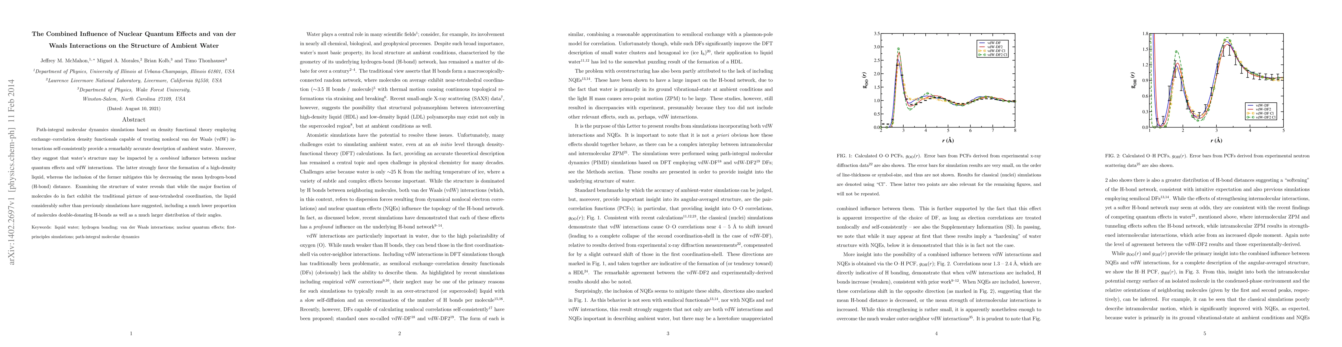 This study reveals that combining nuclear quantum effects with van der Waals interactions significantly alters the structure of ambient water, leading to a softer liquid with a lower proportion of double-donating hydrogen bonds and a broader distribution of hydrogen bond angles.