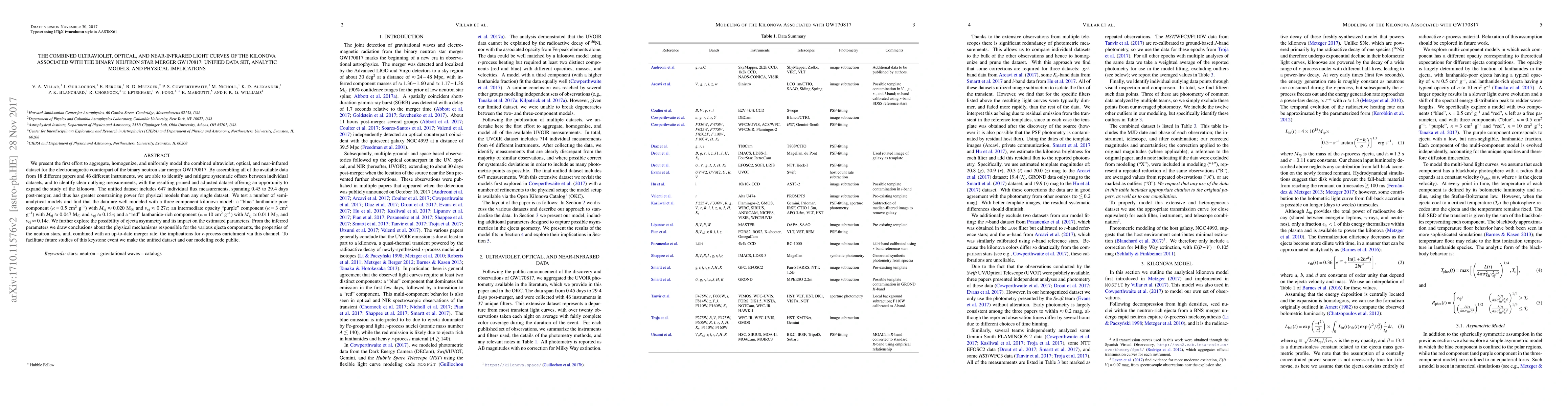 This paper aggregates and models combined ultraviolet, optical, and near-infrared data from 18 papers and 46 instruments to study the kilonova from GW170817. The unified dataset, comprising 647 measurements, supports a three-component model for the kilonova ejecta and provides insights into the neutron star merger's physical mechanisms and implications for r-process enrichment.