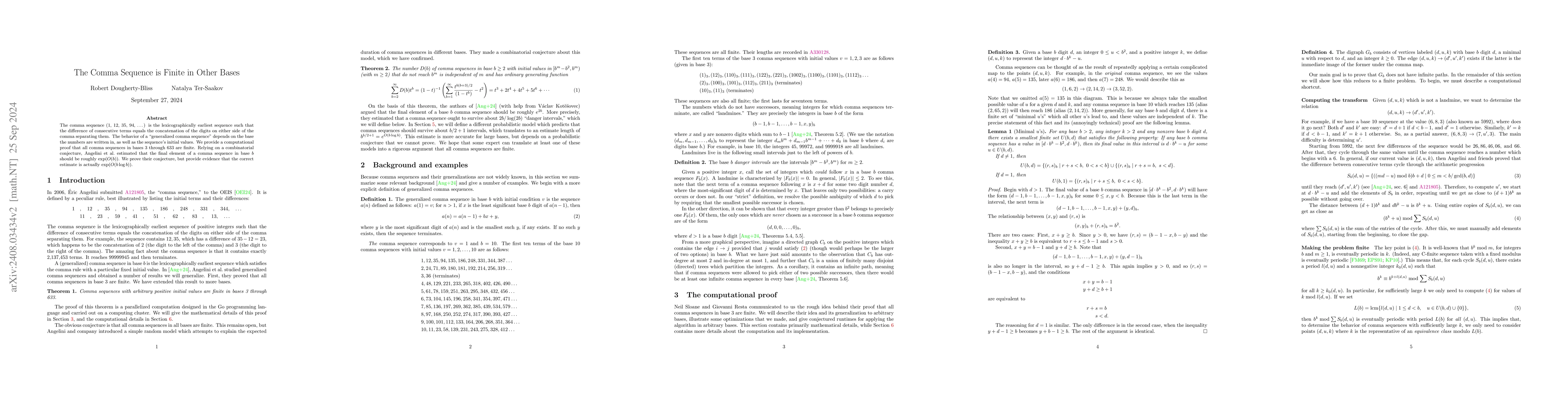 The research demonstrates that comma sequences, which satisfy a specific numerical relationship, are finite across bases 3 through 633. It validates a conjecture estimating the final element's growth as exp(O(b log b)) rather than the previously suggested exp(O(b)).