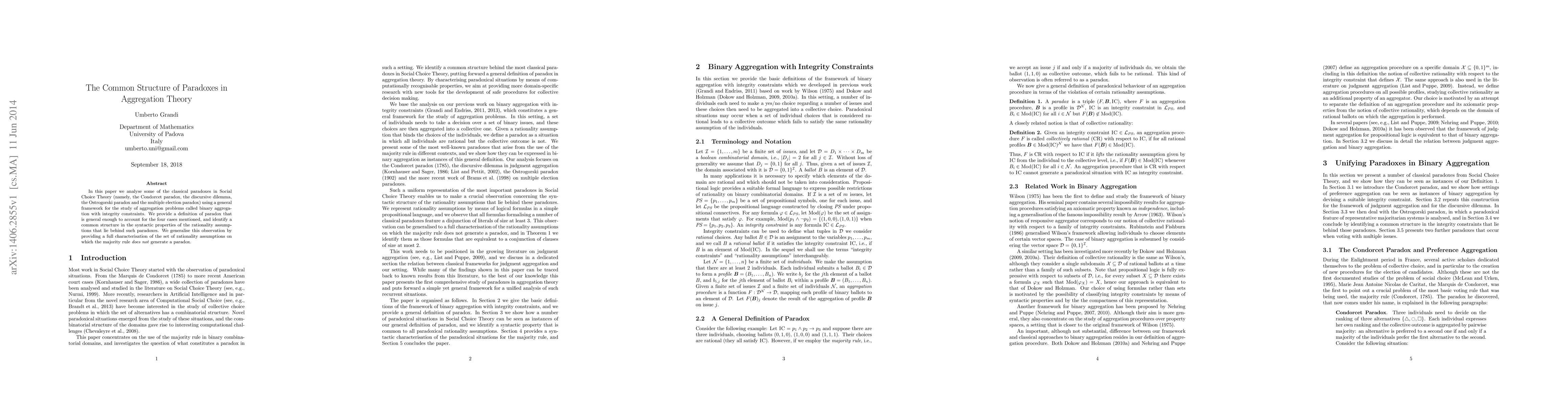 In this paper we analyse some of the classical paradoxes in Social Choice Theory (namely, the Condorcet paradox, the discursive dilemma, the Ostrogorski paradox and the multiple election paradox) using a general framework for the study of aggregation problems called binary aggregation with integrity constraints. We provide a definition of paradox that is general enough to account for the four cases mentioned, and identify a common structure in the syntactic properties of the rationality assumptions that lie behind such paradoxes. We generalise this observation by providing a full characterisation of the set of rationality assumptions on which the majority rule does not generate a paradox.