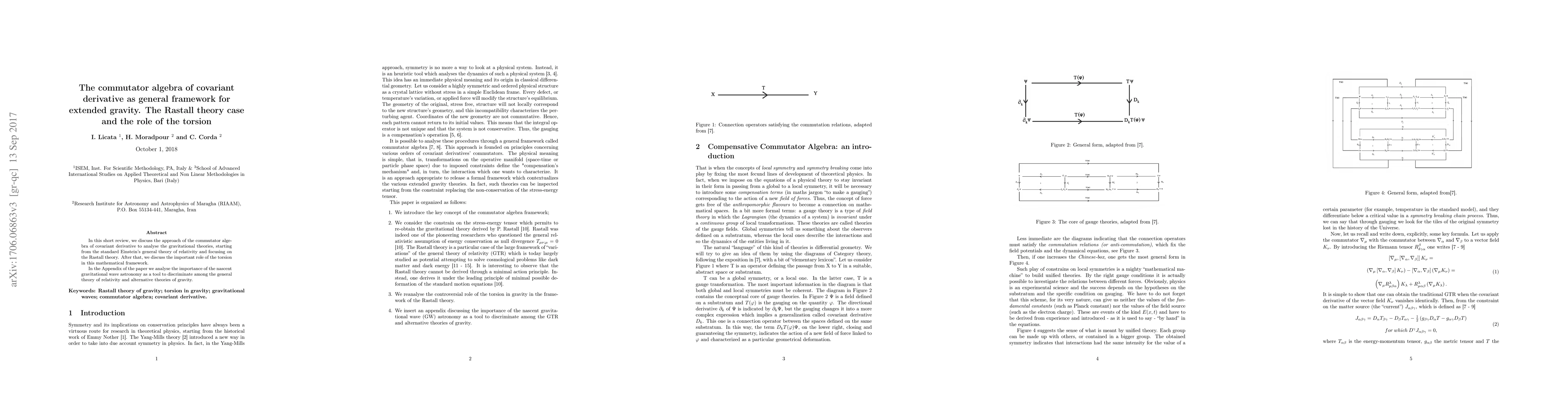 In this short review, we discuss the approach of the commutator algebra of covariant derivative to analyse the gravitational theories, starting from the standard Einstein's general theory of relativity and focusing on the Rastall theory. After that, we discuss the important role of the torsion in this mathematical framework. In the Appendix of the paper we analyse the importance of the nascent gravitational wave astronomy as a tool to discriminate among the general theory of relativity and alternative theories of gravity.