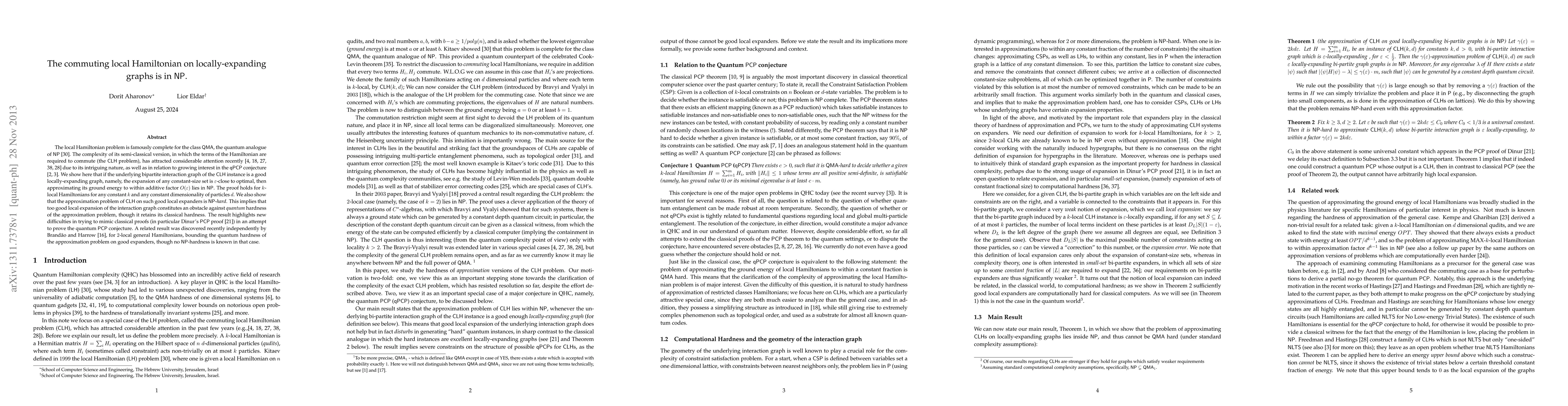 This paper demonstrates that approximating the ground energy of commuting local Hamiltonians (CLH) on locally-expanding graphs lies in NP, while also proving NP-hardness for such graphs. This finding suggests that strong local expansion limits quantum hardness but retains classical hardness, complicating efforts to prove the quantum PCP conjecture.
