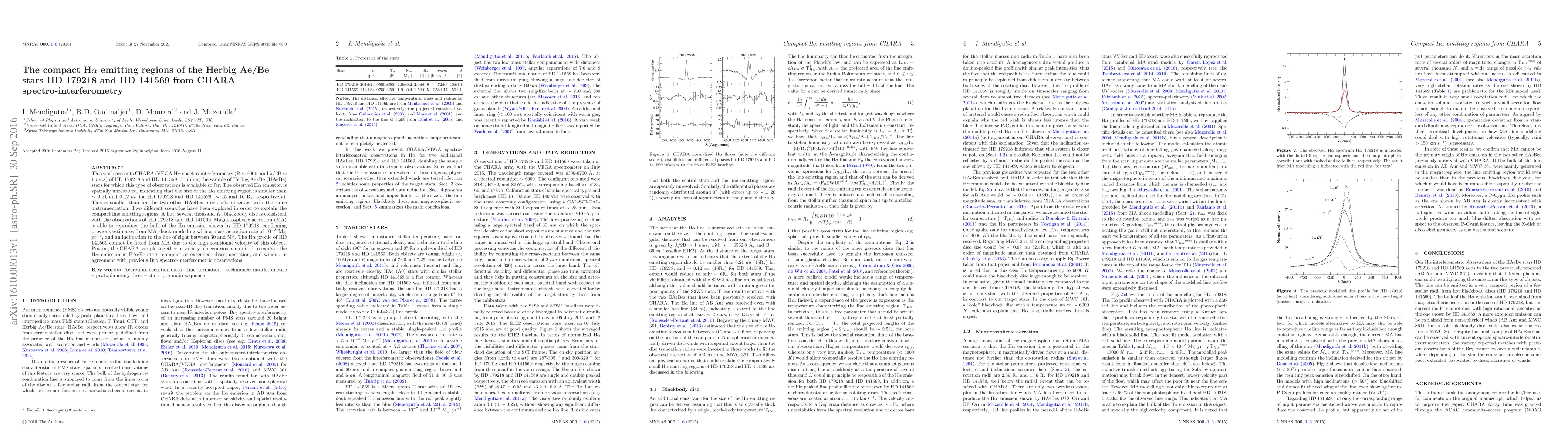 This research uses CHARA/VEGA spectro-interferometry to observe the H$\alpha$ emission regions of Herbig Ae/Be stars HD 179218 and HD 141569, finding their H$\alpha$ emitting regions are compact, smaller than previously observed. Various models, including hot disc and magnetospheric accretion, are proposed to explain these compact regions.