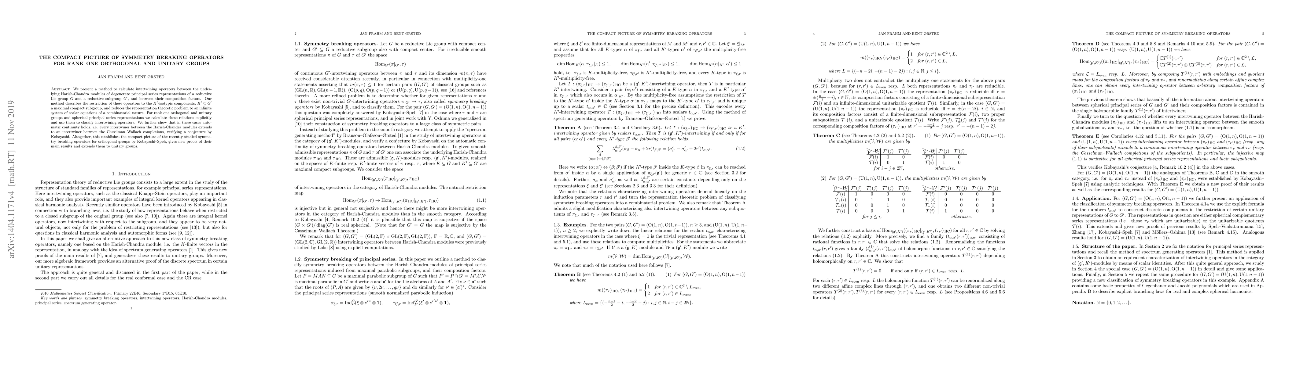 This paper presents a method to determine intertwining operators for degenerate principal series representations between semisimple Lie groups and their subgroups, focusing on rank one orthogonal and unitary groups. It establishes a compact system of equations and verifies the automatic continuity conjecture for these symmetry breaking operators, extending the results to unitary groups.