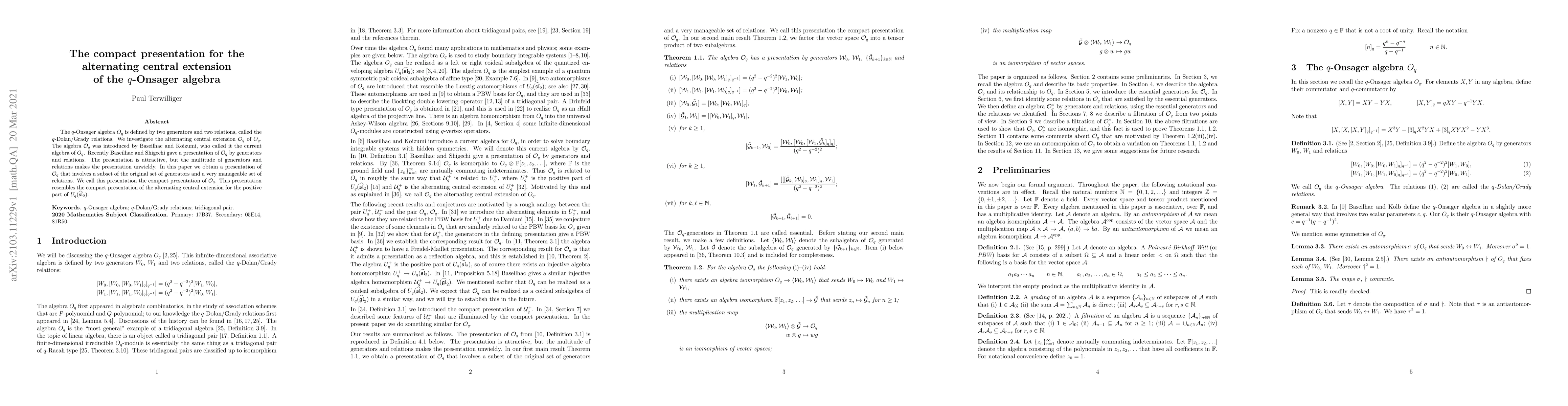The $q$-Onsager algebra $O_q$ is defined by two generators and two relations, called the $q$-Dolan/Grady relations. We investigate the alternating central extension $\mathcal O_q$ of $O_q$. The algebra $\mathcal O_q$ was introduced by Baseilhac and Koizumi, who called it the current algebra of $O_q$. Recently Baseilhac and Shigechi gave a presentation of $\mathcal O_q$ by generators and relations. The presentation is attractive, but the multitude of generators and relations makes the presentation unwieldy. In this paper we obtain a presentation of $\mathcal O_q$ that involves a subset of the original set of generators and a very manageable set of relations. We call this presentation the compact presentation of $\mathcal O_q$. This presentation resembles the compact presentation of the alternating central extension for the positive part of $U_q(\widehat{\mathfrak{sl}}_2)$.