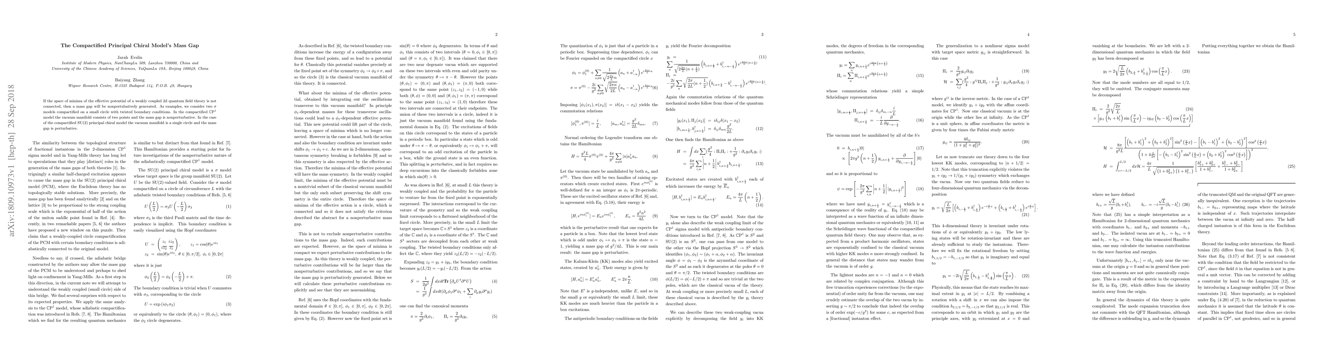 This paper explores the generation of a mass gap in compactified principal chiral models, demonstrating that a nonperturbative mass gap arises in the SO(3) model while a perturbative mass gap occurs in the SU(2) model due to differences in their vacuum manifolds.