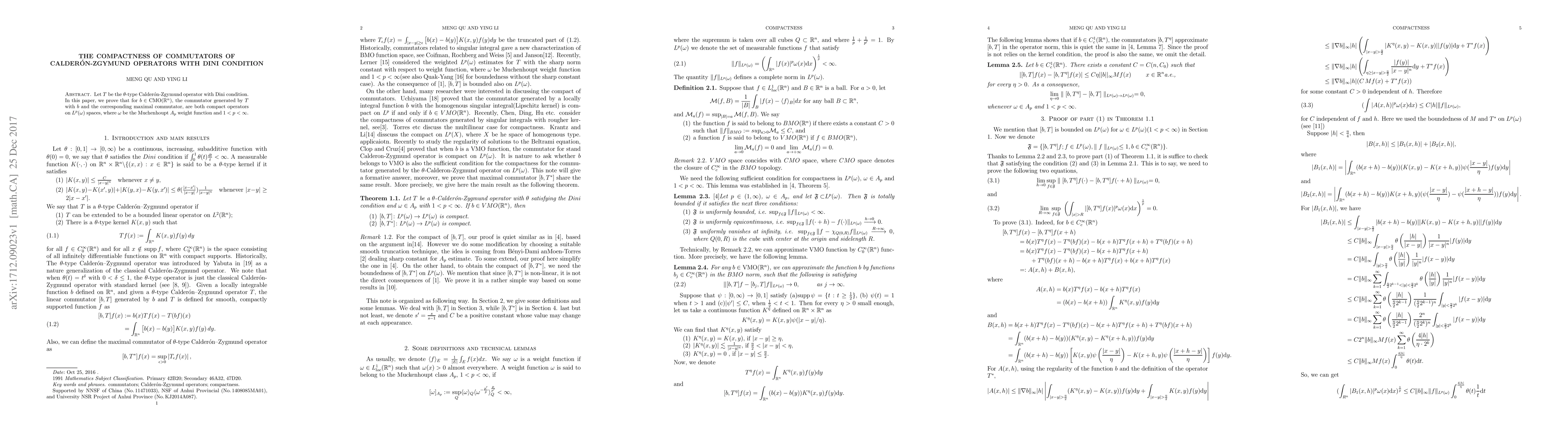 This paper proves that for certain types of operators (Calderón-Zygmund operators with Dini condition), when paired with functions from the Campanato space (CMO), the resulting commutators are compact on L^p weight spaces. This has implications in harmonic analysis and operator theory, simplifying the understanding of commutator properties under specific conditions.